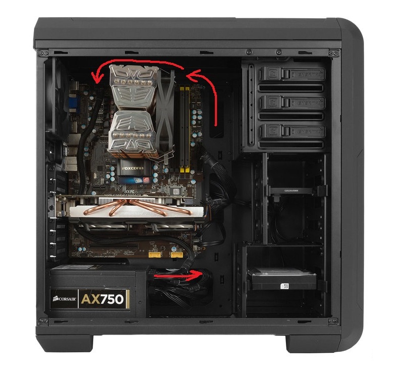 Und das mit dem Stromkabel über das Mainboard habe ich nicht ganz verstanden - warum kann man den nicht hinten rum legen? Vielleicht noch ein Bild dazu?