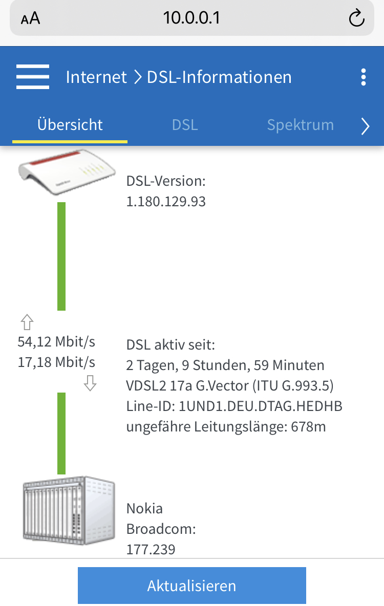 - Speedtests dann direkt vom Endgerät per Kabel an Fritzbox gegen mehrere Ziele (Provider, Google, speedof.me, etc)
