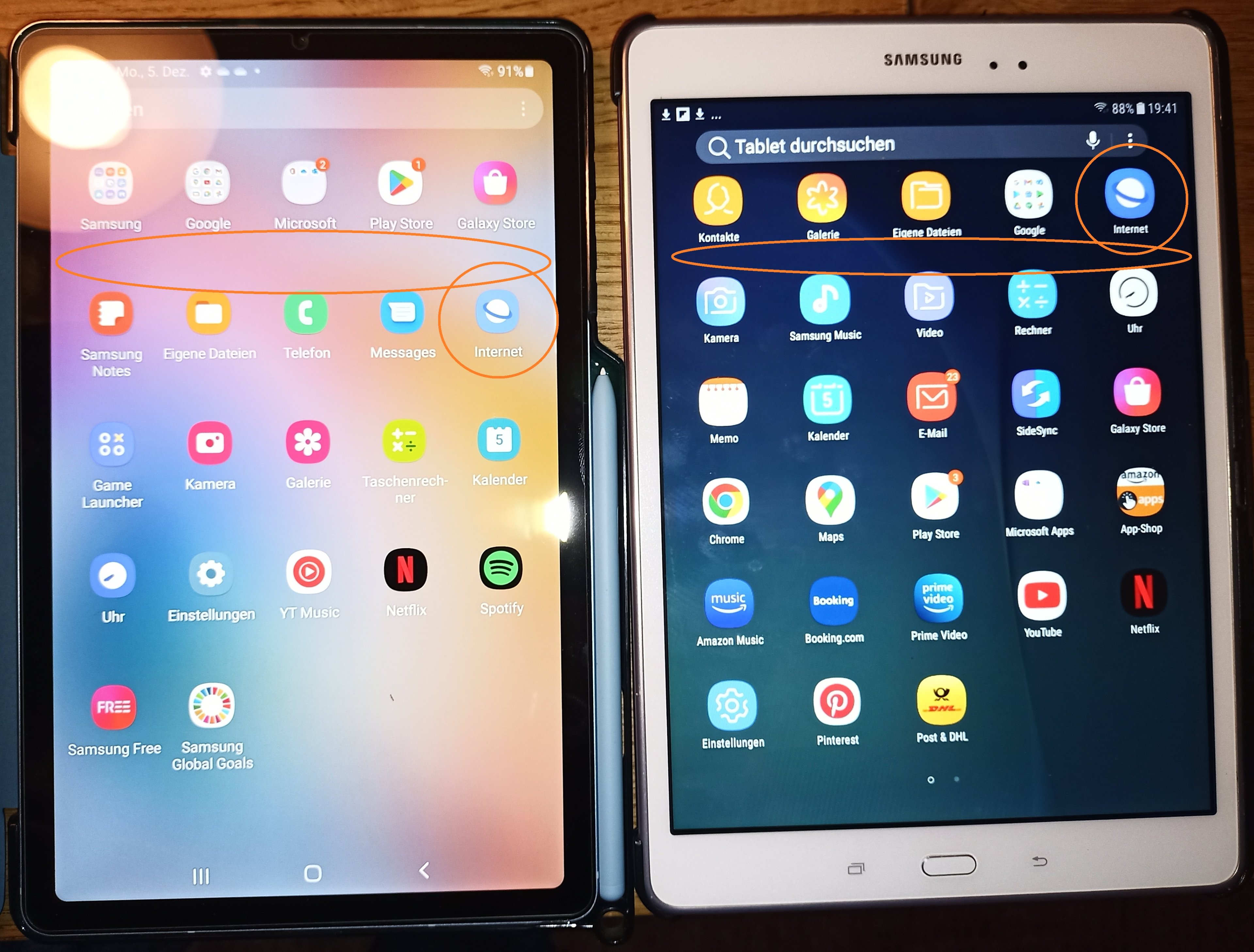 Nachdem ich dieses für die Ersteinrichtung selbst ein wenig in der Kuhr hatte, denke ich mittlerweile jedoch, dass es nicht das passende Gerät für sie ist. Warum lässt sich anhand der Bilder im direkten Vergleich, mit ihrem 7 Jahre alten Samsung Tab, vielleicht nachvollziehen.