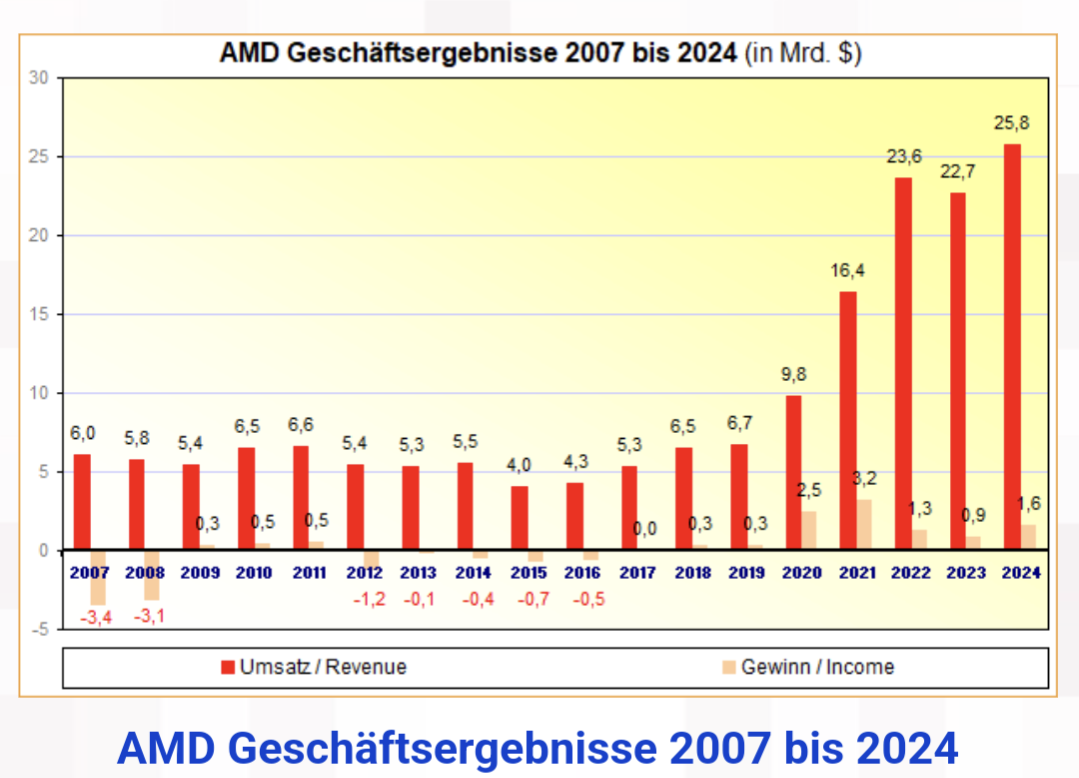 @Maxminator woher kommen diese Annahmen? AMD hat den Umsatz In den letzten 5 Jahren vervierfacht.