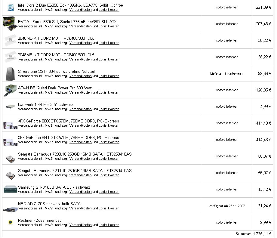 Habe herausgefunden, dass ich für die Top Grafikkarten auf jeden Fall einen sehr schnellen Prozessor benötige damit der "Flaschenhals" nicht bei der CPU liegt. Ins Auge habe ich den E6850 3.00GHz oder den X6800 gleicher Taktung gefasst, warum?, weil ich eine der High End Grafikkarten brauche .....