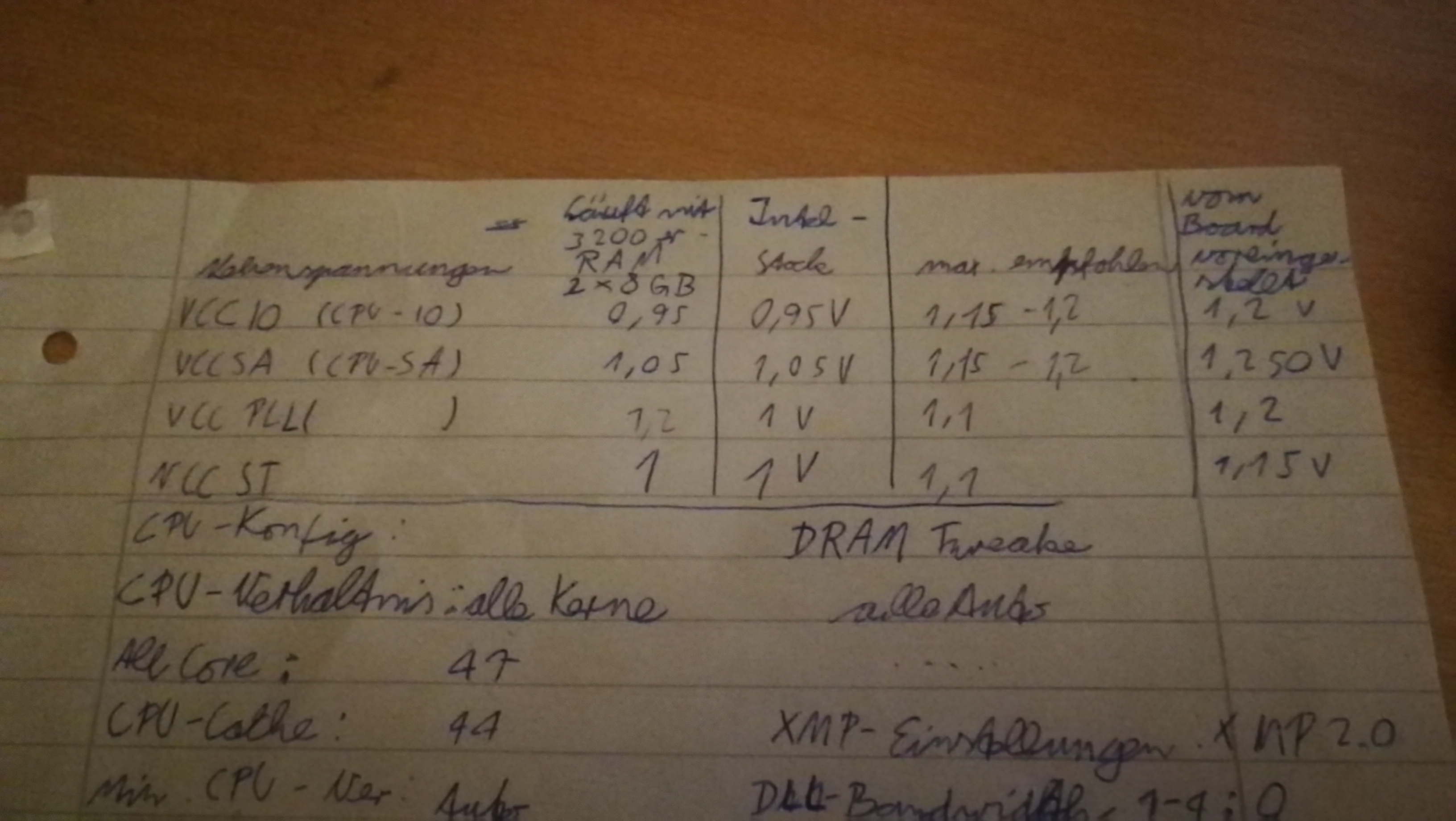 Du hast ja ein Intelsystem, aber vielleicht funktioniert auch das Programm TestMem5. Auch würde ich mal AIDA64 ( die Freeware Version reichtn ist ja 30 Tage verfügbar )installieren, dort den Stabilitätstest laufen lassen, ca. 1h. Die Einstellungen dort werde ich mal einen Sceen machen. Sollte das Programm vor 1h einen Fehler anzeigen, liegt es zum großen teil an einer oder mehren Spannungen.