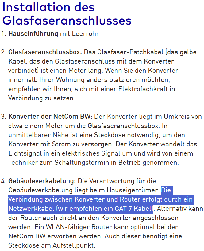 Wenn der Glasfaseranschluss im leeren Raum platziert wird und der Router wandhängend an der Wand der Treppe zum 1. Stock, muss ein Netzwerkkabel durch die Wand verlegt werden, um die Verbindung herzustellen.