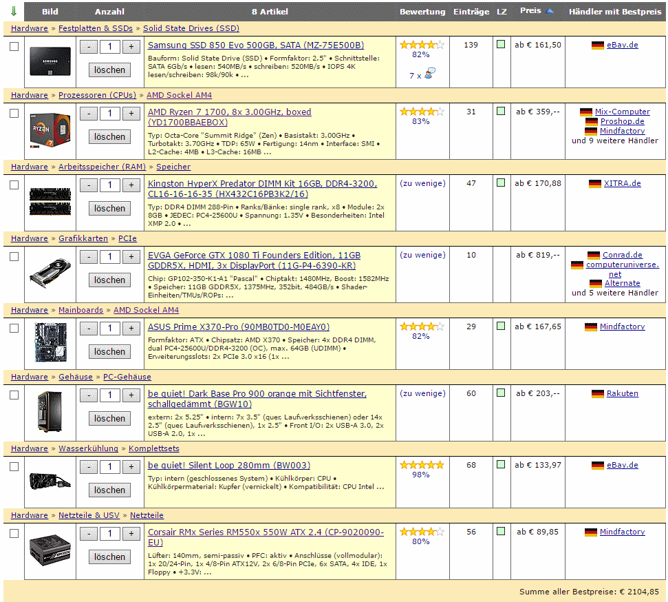 Beim RAM möchte ich auf Corsair setzten denn auch diese Firma hat mich nie enttäuscht. Ich würde gerne ein 16GB Rigel verbauen. Das macht das aufrüsten später einfacher. Der 3000er MHZ war der einzige Rigel 16er den ich finden konnte. Dieser wird laut Kompabilitätliste nicht vom Mobo unterstützt. Der sollte aber trotzdem (mit geringerem Takt) laufen. Ich weiß zur Zeit gibt es noch Probleme mit den BIOS bzw. Speichercontrolern aber gibt es hier schon erste Erfahrungen?