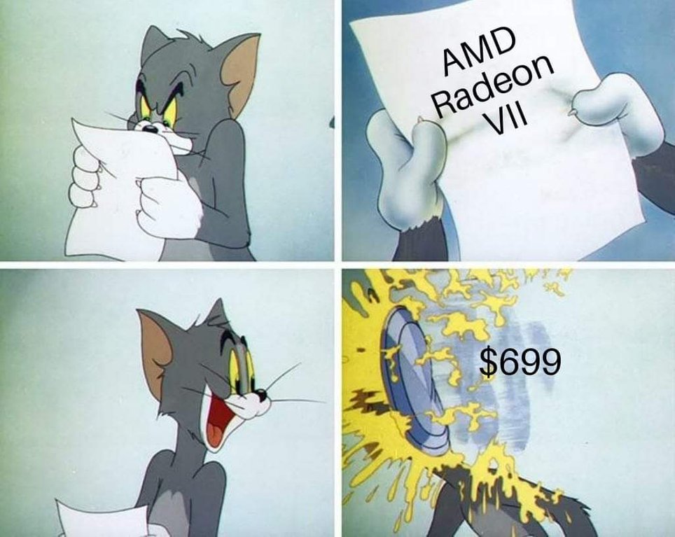 Die Radeon VII herunter zu machen, weil sie nicht einmal RTX 2080 Leistung durchweg erreicht, schon gar nicht in den Vapor-Features DLSS und RTX-Raytracing, welches gerade einmal zwei Spiele unterstuetzen, ist auch lustig, zumal die fetten, relativ ineffektiven und mittlerweile veralteten 12nm Chips von nVidia auch nicht wirklich fuer Innovation sondern alleine fuer Gewinnmaximierung stehen (der wohl nicht so viele Interessenten wie erhofft bisher auf den Leim gegangen sind) .