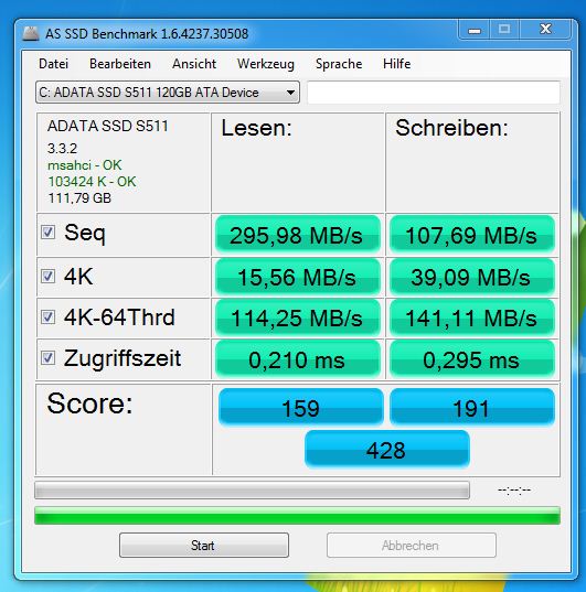 DisableDeleteNotify = 0 (Windows TRIM Funktionen sind aktiviert)