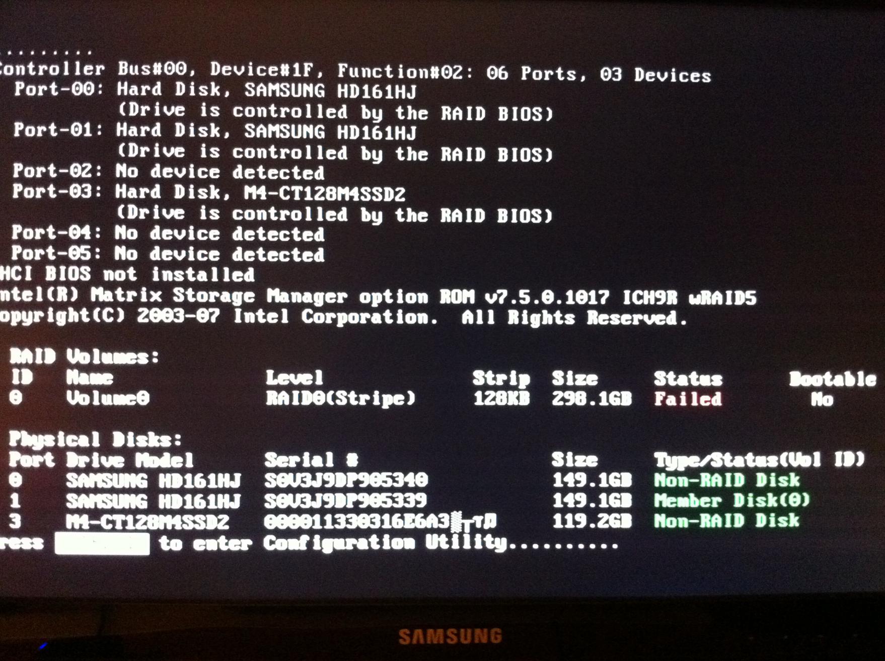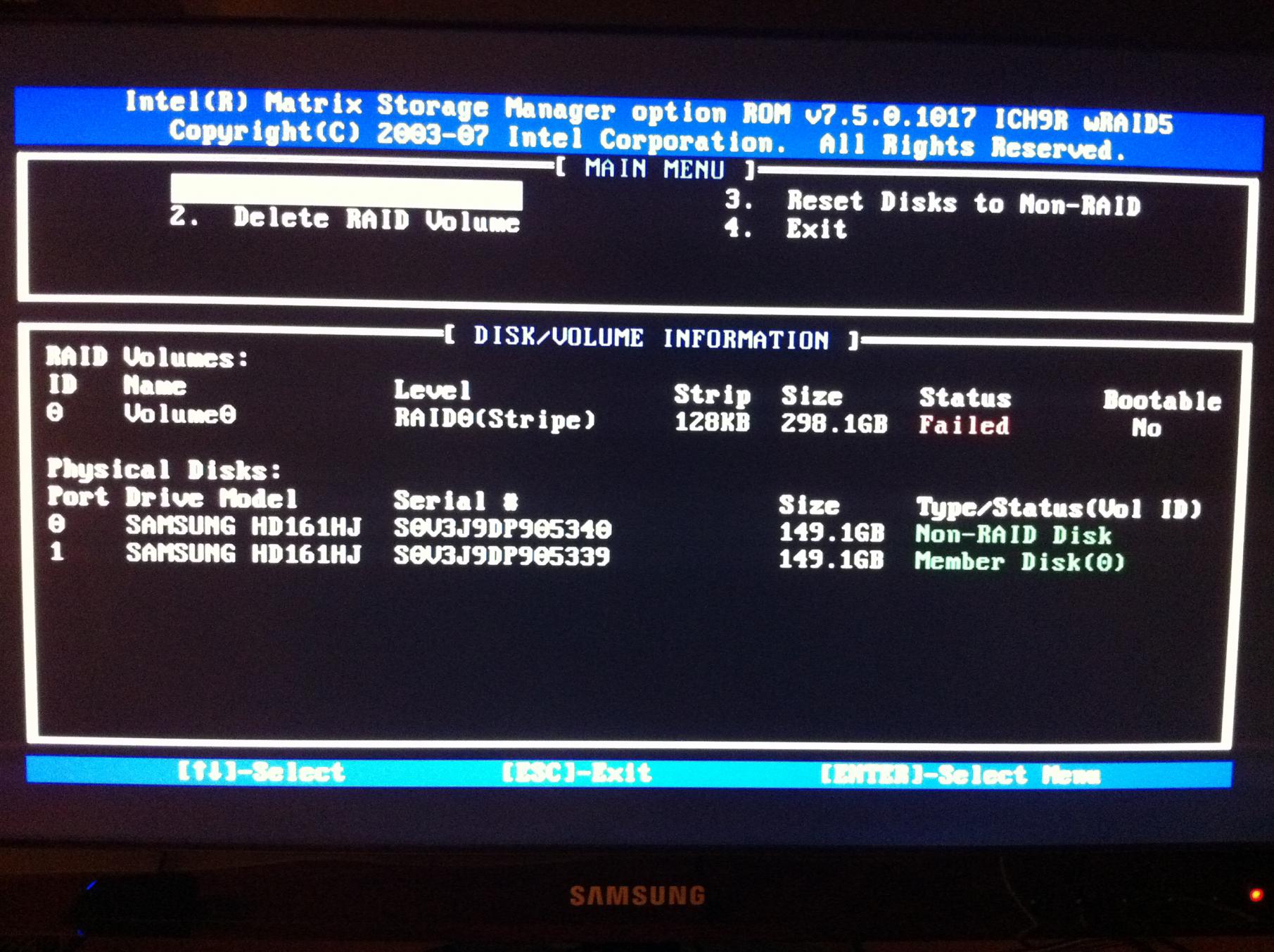 Als ich den Rechner dann neu startete und im BIOS wieder den RAID-Modus aktivierte war eine der beiden Samsung als Non-RAID Disk aufgeführt!