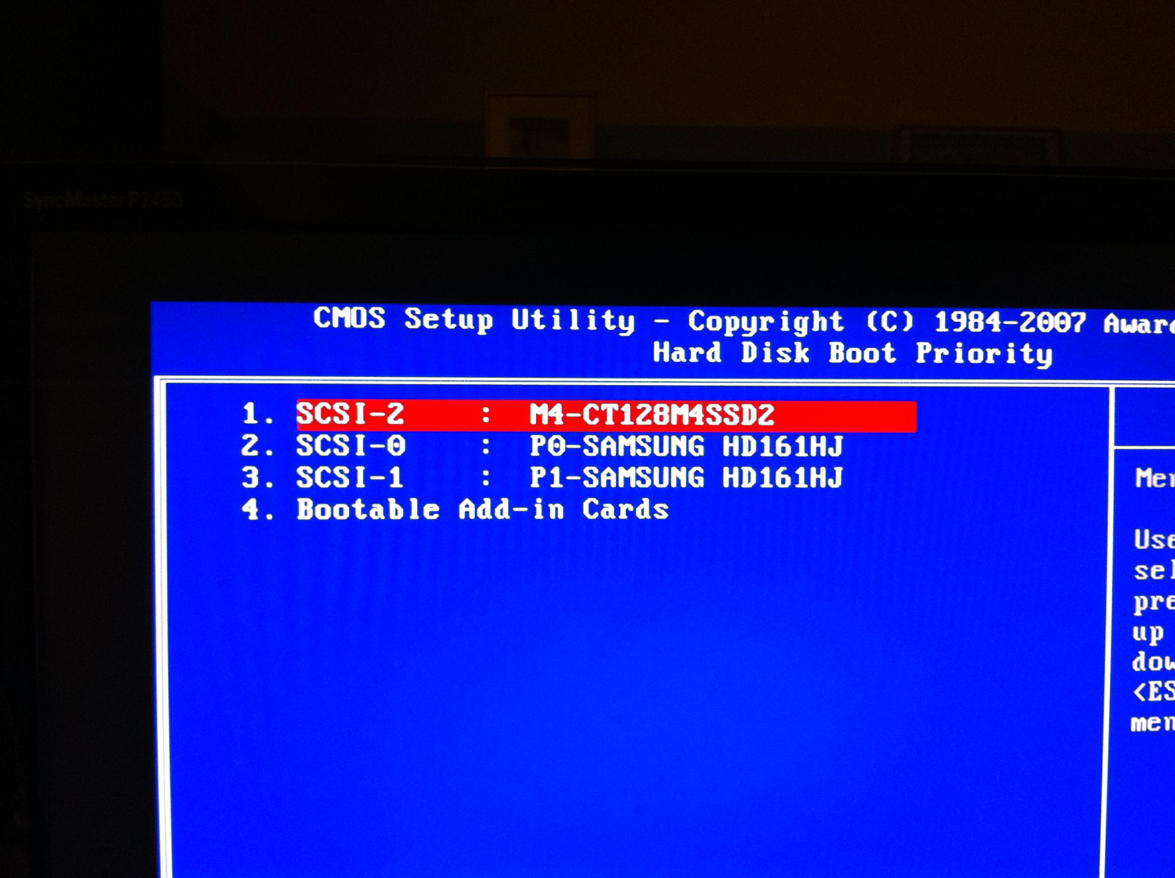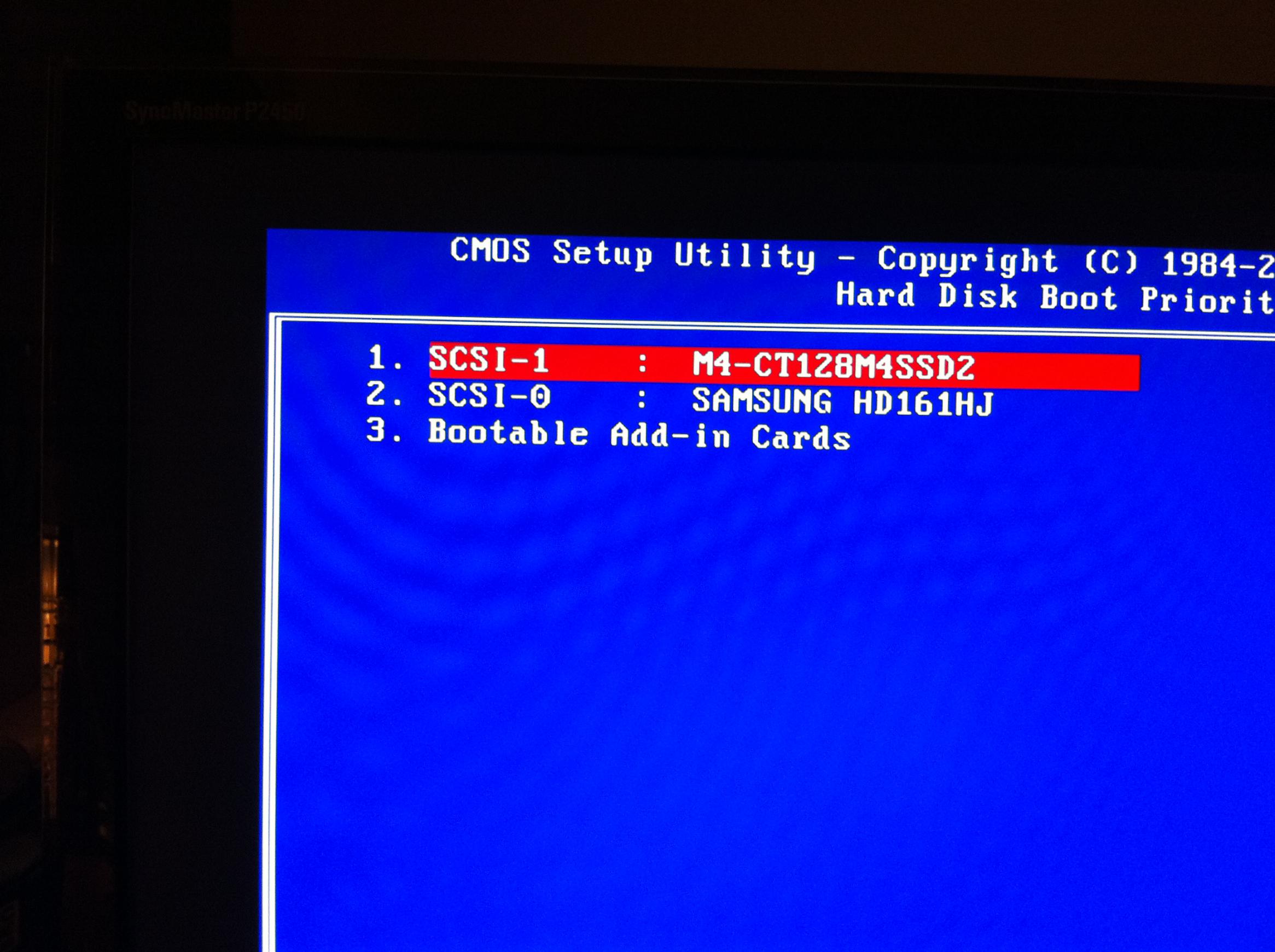 Steht der SATA-Controller der Samsung Platten auf RAID, kann ich bei der Boot-Reihenfolge der Festplatten nur eine Samsung und die Crucial sehen, steht der SATA-Controller auf AHCI sehe ich beide Samsung und die Crucial! (Screenshots anbei)
