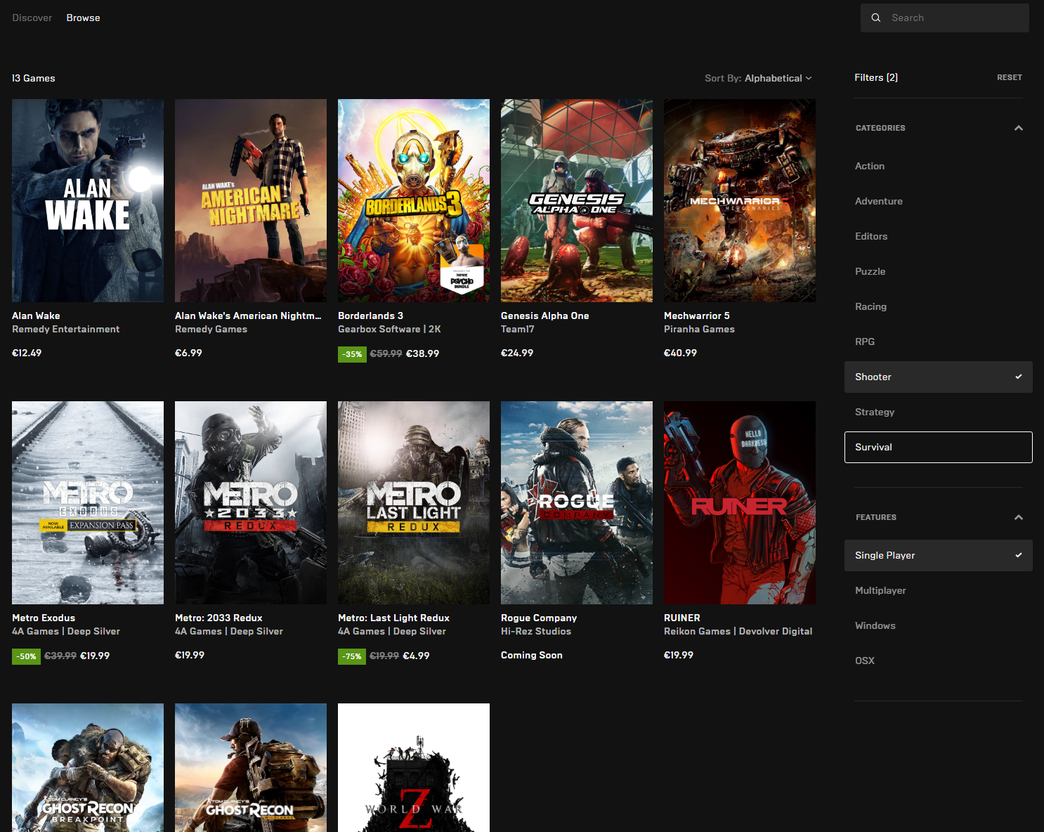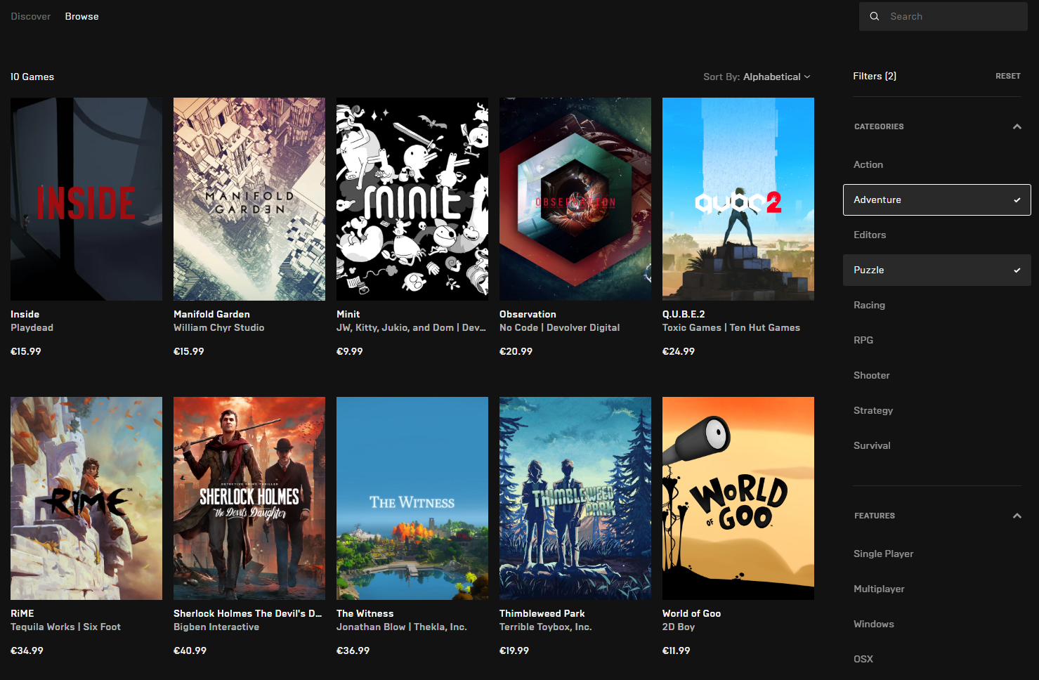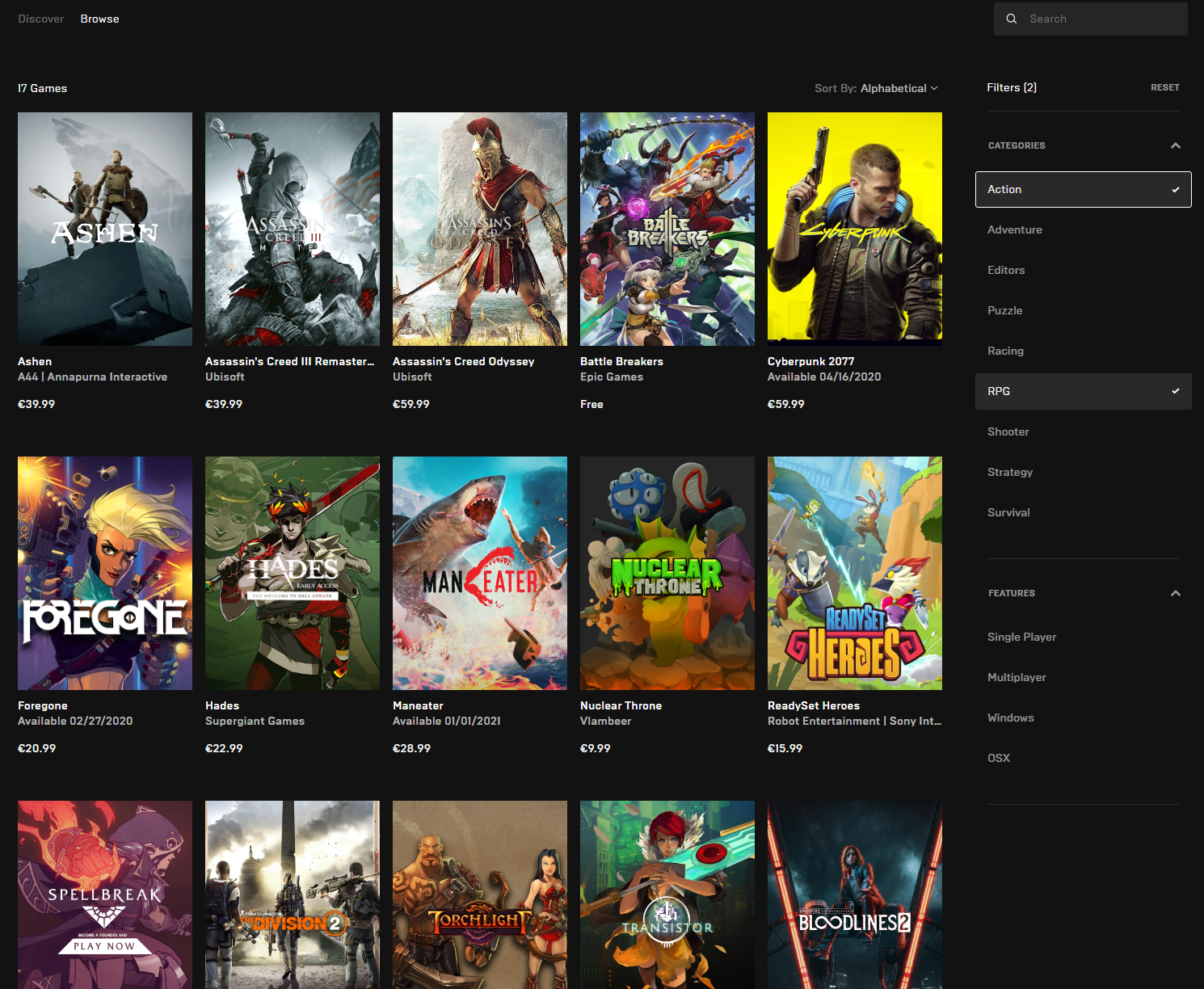 Bisher gibt es lediglich 228 Spiele im Epicstore, da kann man schon recht flott nach interessant wirkenden Spielen durchscrollen: