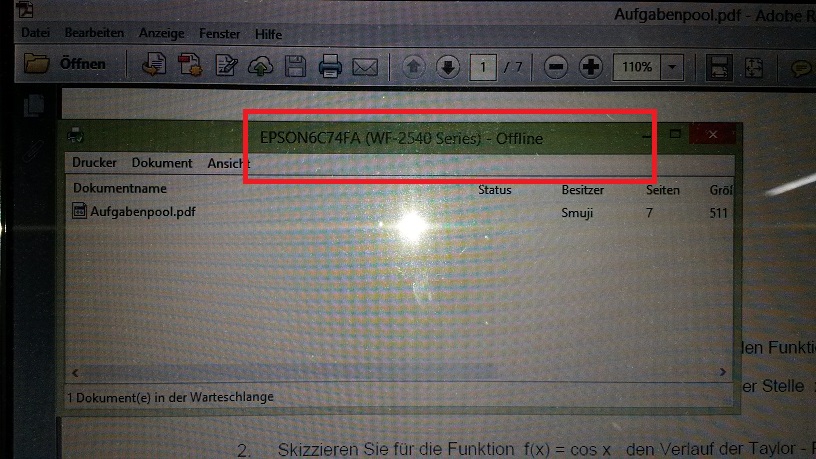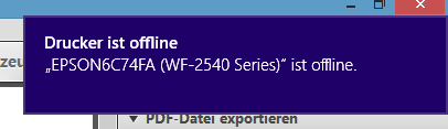 ich habe meinen Epson per Wlan ins Netzwerk eingebunden und konnte immer Prima damit drucken, doch in letzter Zeit macht er immer mehr Probleme. Wenn ich dann was drucken will von meinem Notebook, sagt mir mein Win8.1 dass der Drucker offline sei, was aber garnicht stimmt, siehe Bilder.