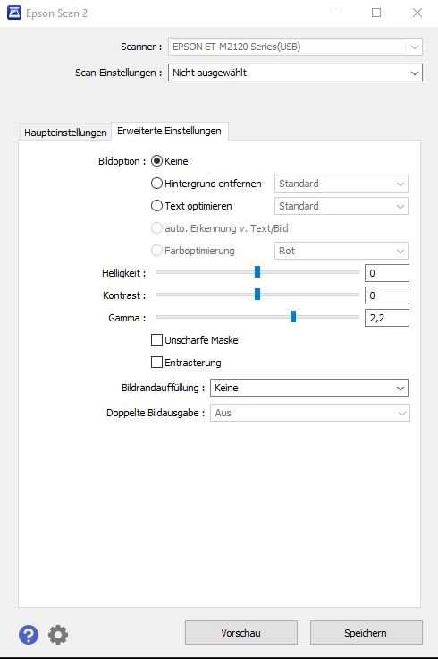 Also ich habe hier 2 Programme mit dem ich scannen kann: Epson Scan 2 und Epson ScanSmart