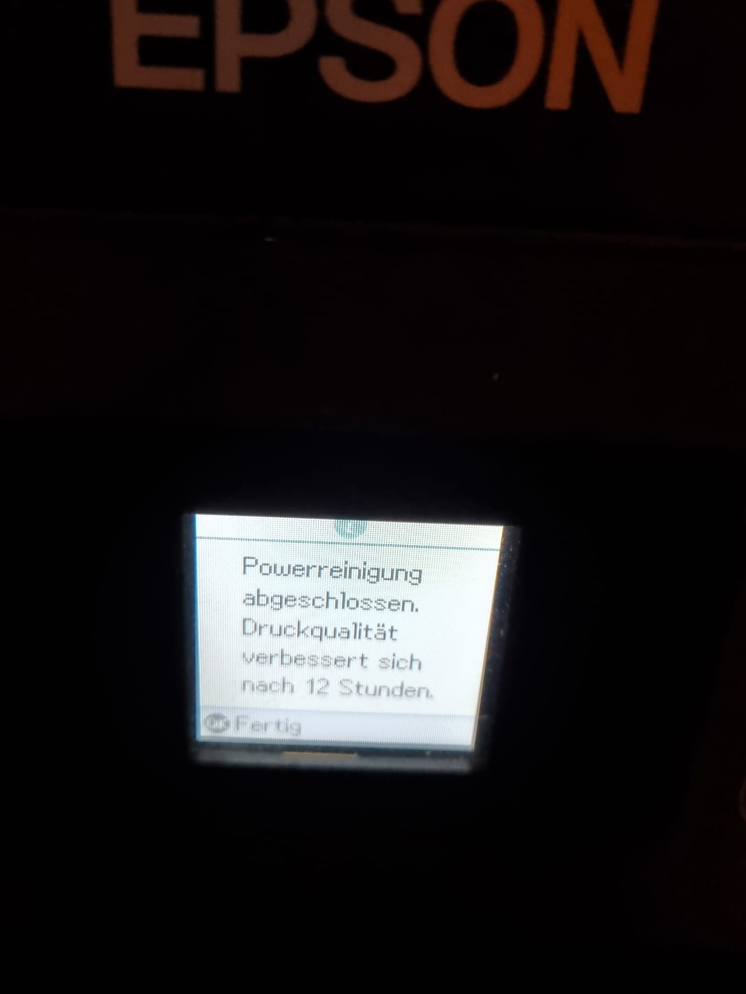 Ich habe anschließend- direkt im Druckermenü - Düsenreinigung und Powerreinigung durchgeführt. Die Druckqualität sollte sich angeblich nach 12 Stunden verbessern, siehe Anlage. Am Ende einen Düsentest gemacht, da war fast gar nichts mehr zu sehen :-(