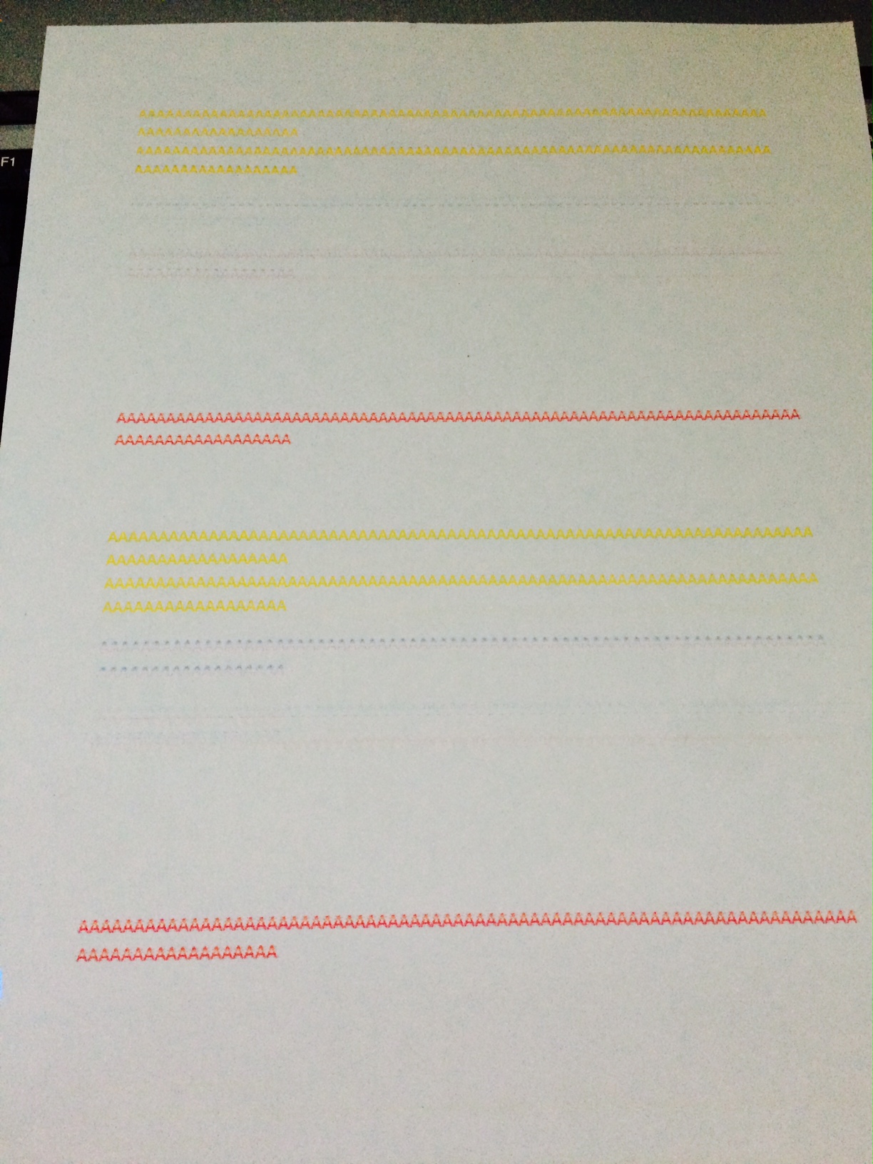 Als letzten Ausweg habe ich etwas Isopropyl-Alk von oben in die Farbnehmer gespritzt und den Druckkopf etwas damit eingeweicht. Leider hilft auch das nicht. Habe mir selbst eine Probeseite erstellt mit Grün, Blau, Schwarz und Rot. Nur Rot und Geld funktionieren wirklich.