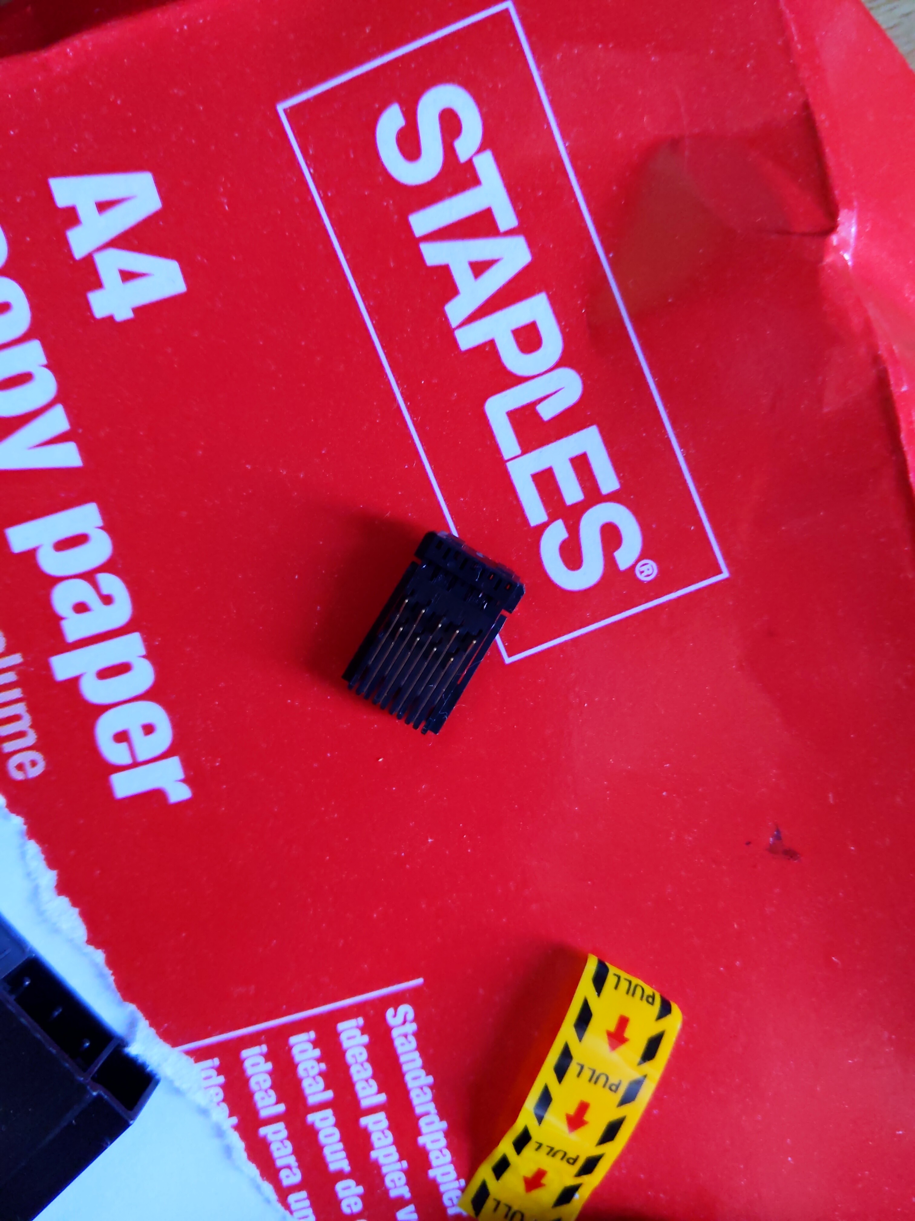 Hat auf beiden Seiten diese Goldlamellen, soll wohl den Konatkt von der grünen platine hinten und dem Chip der Patrone bissl abfedern/entkräften beim ein und ausstecken?