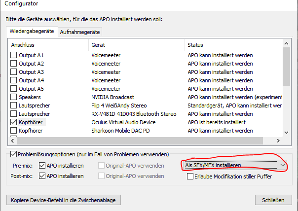 ich bin einer derer, bei denen Equalizer APO einfach nix tut: