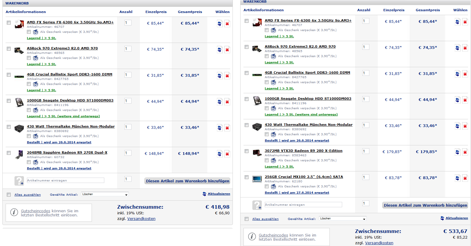 Ein Kollege von mir und ich möchten uns jeweils einen neuen PC zusammenbauen.