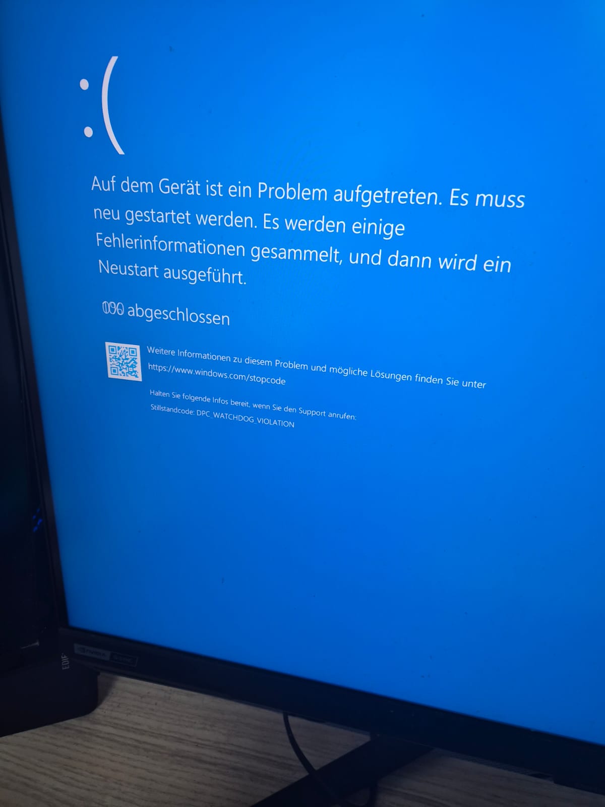 Das stört mich jetzt noch nicht direkt (ich vermute aber, dass das obengenannte mit meinem Hauptproblem zusammenhängt) aber regelmäßig friert mein PC nun nach ein paar Stunden Nutzung ein. Zuerst bleibt das Bild stehen (im Browser oder Youtubevideo), ein paar Sekunden später die Maus und der Ton läuft noch ca. 2 Minuten weiter und dann kommt ein Bluescreen mit dem Stillstandcode: "DPC_Watchdog_Violation".