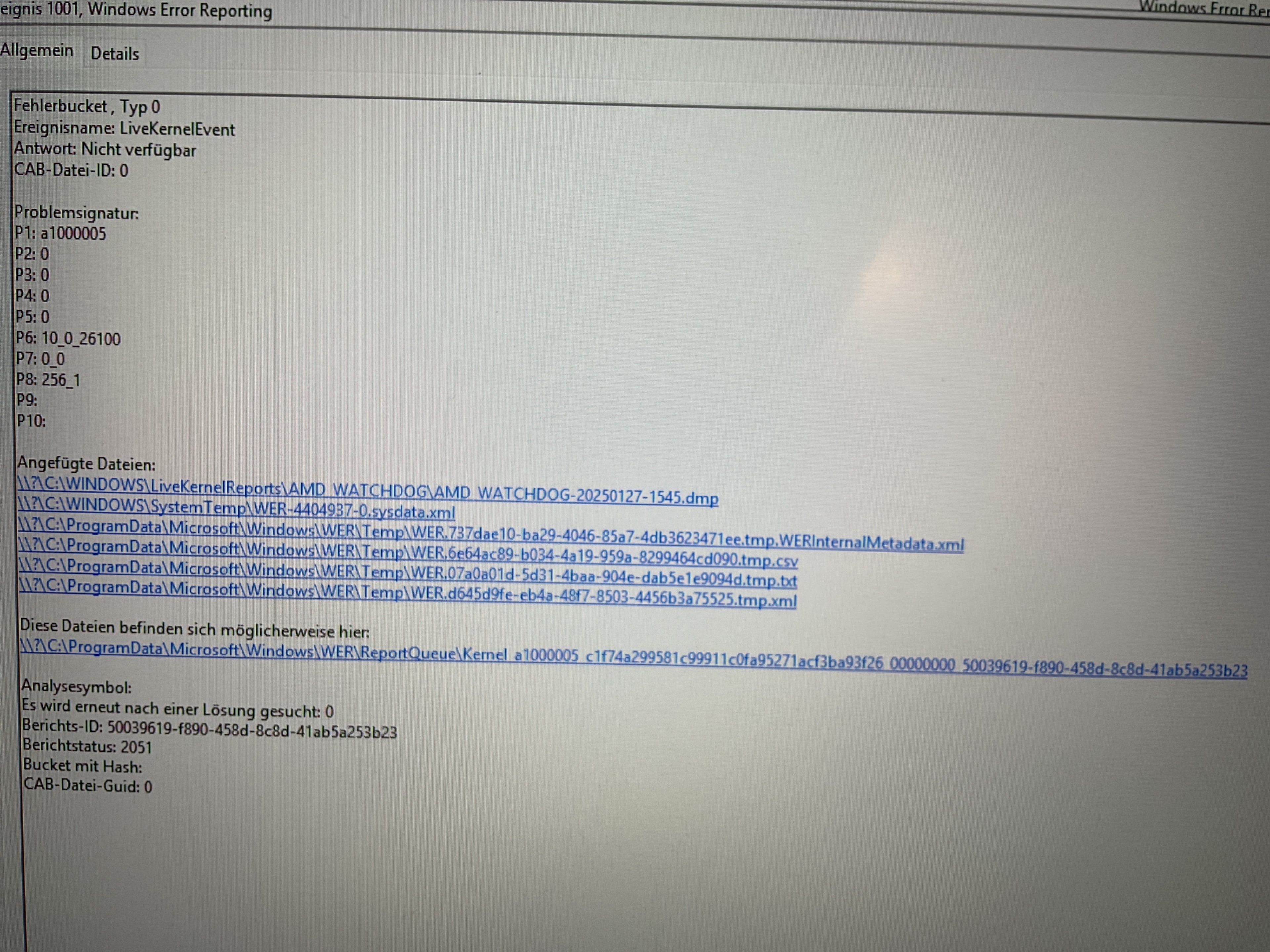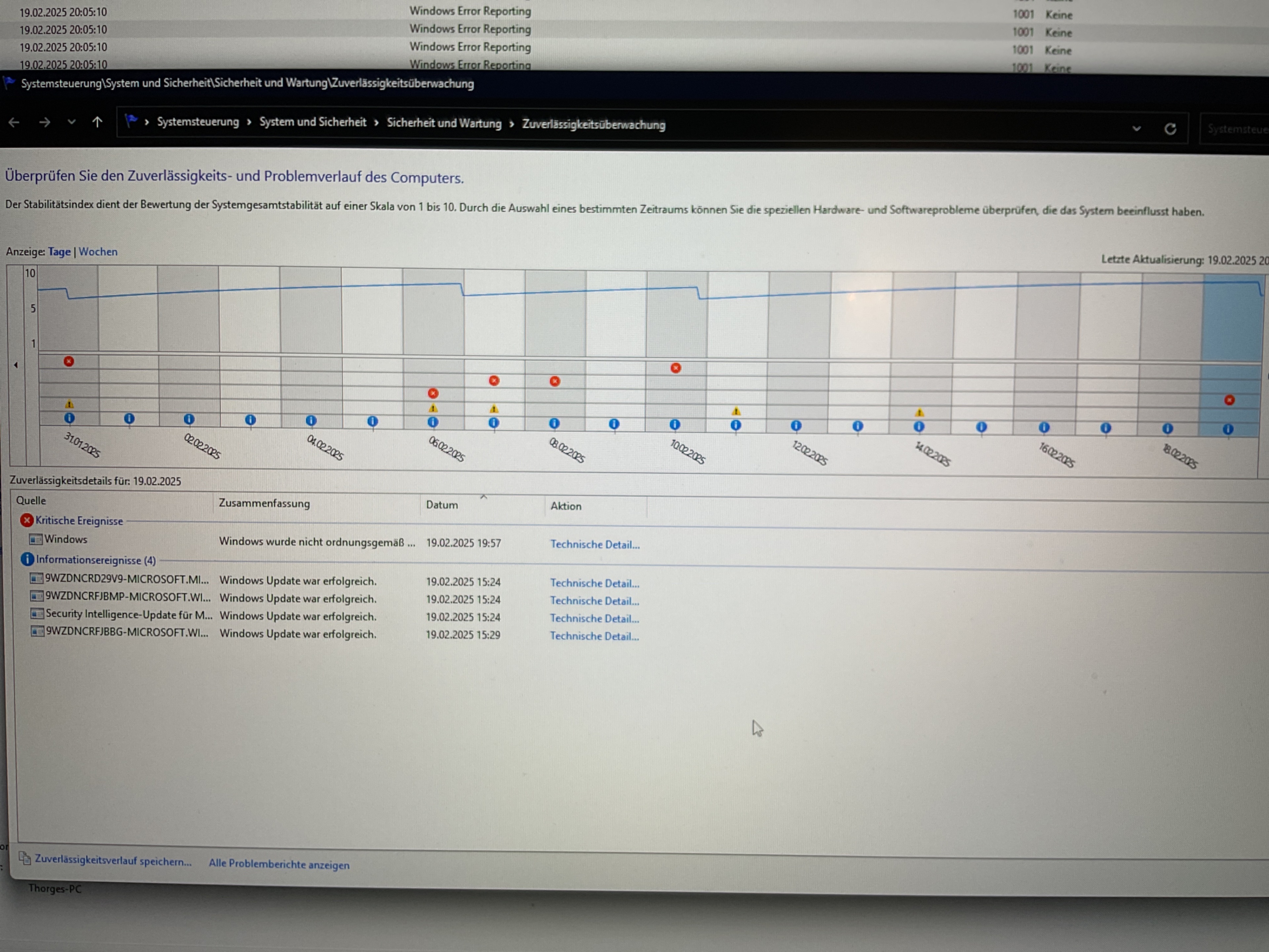 Und dann lieferst Du bitte einen ScreenShot der lesbar ist. Noch besser wäre das Du mal in den Zuverlässigkeitsverlauf schaust.