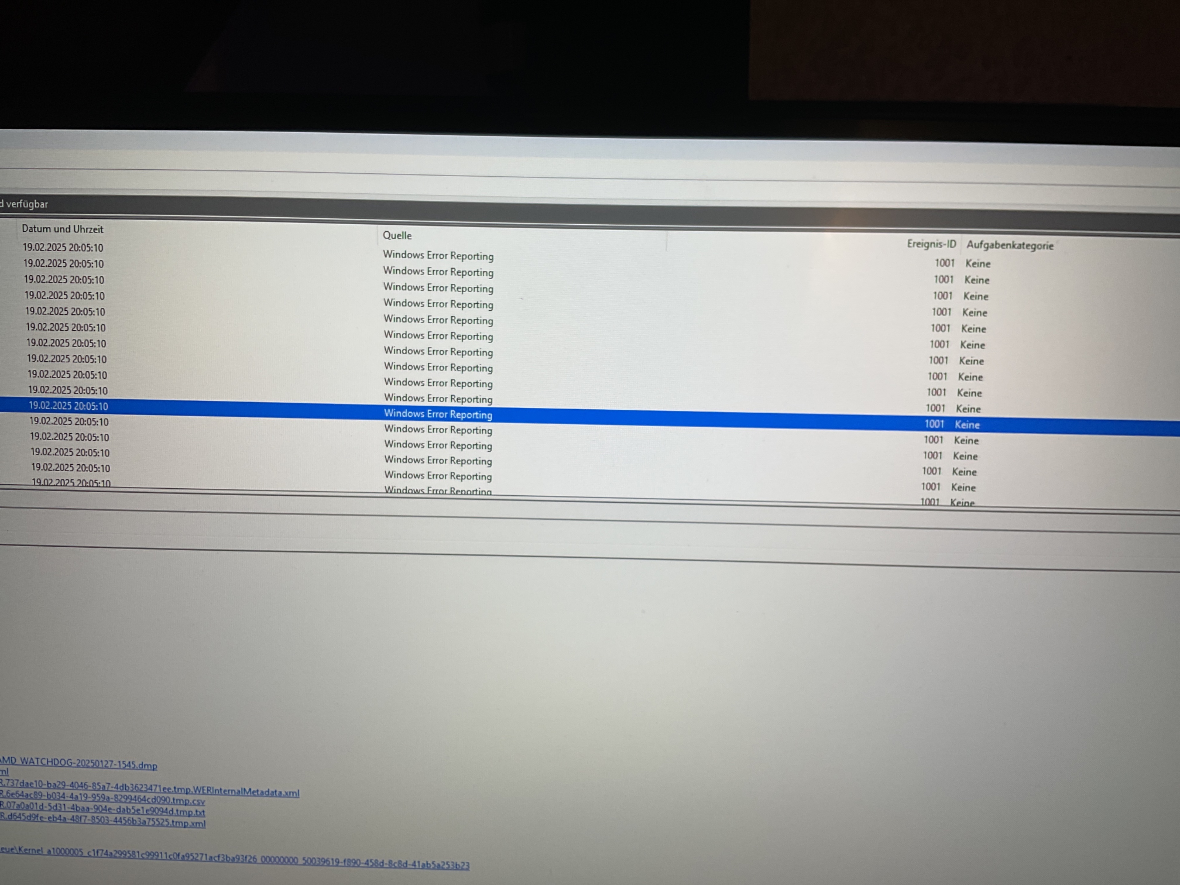 Guten Abend, ich habe gerade in meinen Eventviewer einen Fehler unter Windows-Protokolle und dann Anwendung gesehen und zwar ein 1001. Ich habe mal irgendwo gelesen, dass der Fehler ein Fehler ist der behoben werden soll. Ich habe aber sonst nichts außergewöhnliches bemerkt.