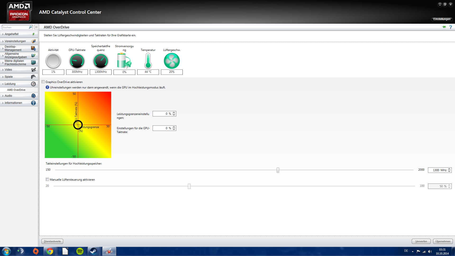 Jetzt würde ich die Taktrate gerne senken jedoch sieht das bei mir etwas anders aus.Reicht es die Markierung in dem farbigen Feld der linken unteren Ecke anzunähern oder gibt es noch mehr zu beachten?