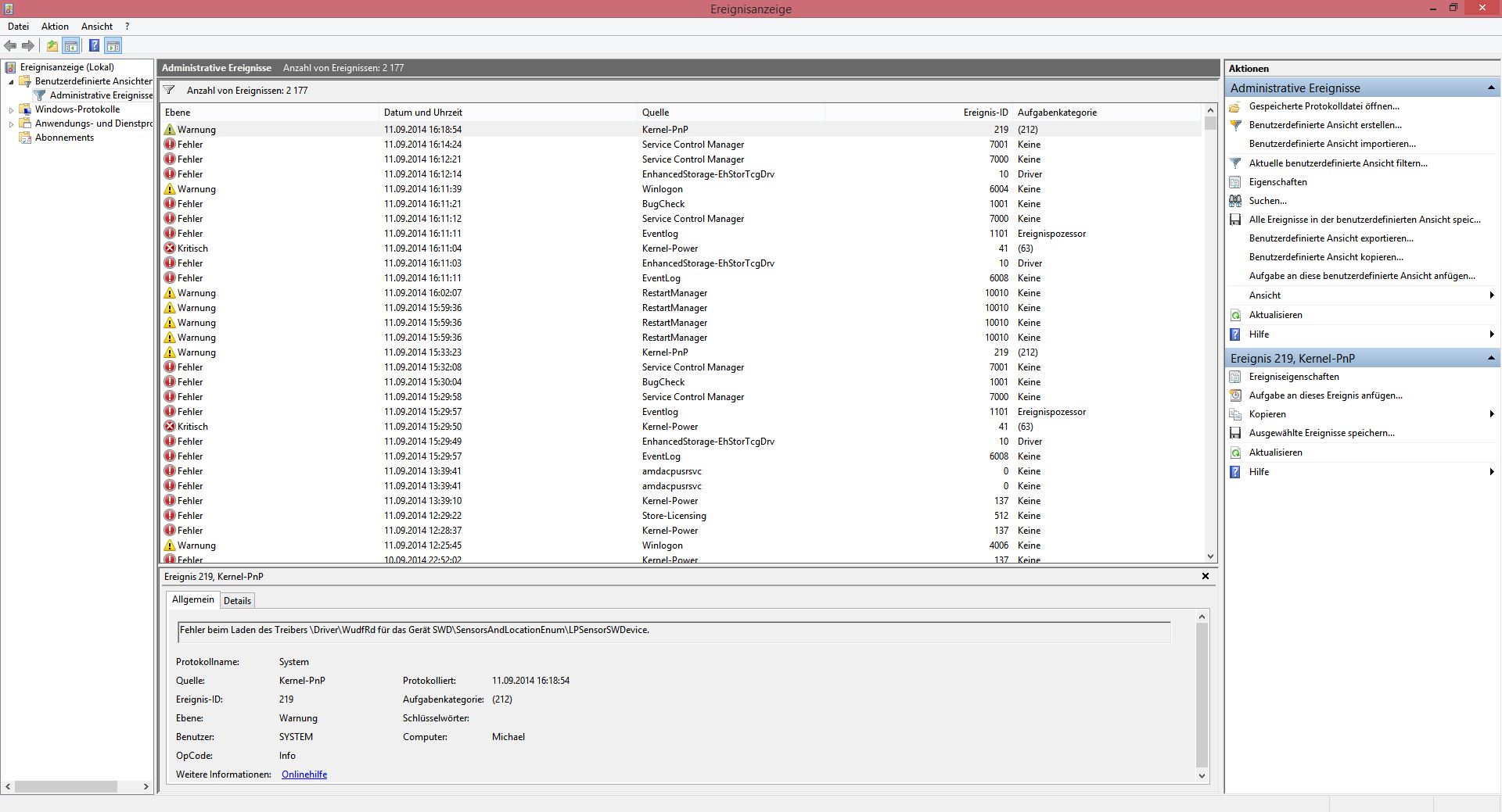 Komisch ist auch der Fehler bei der Ereignisanzeige. Hatte das schon mal gelöst - kommt aber immer wieder.