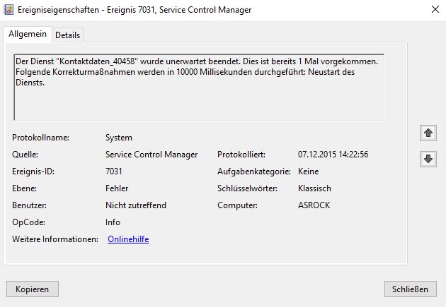 Ich habe ich der Ereignisanzeige unter System immer die gleichen Fehleranzeigen und mir sagen die leider nichts. Nutze Win 10 x64