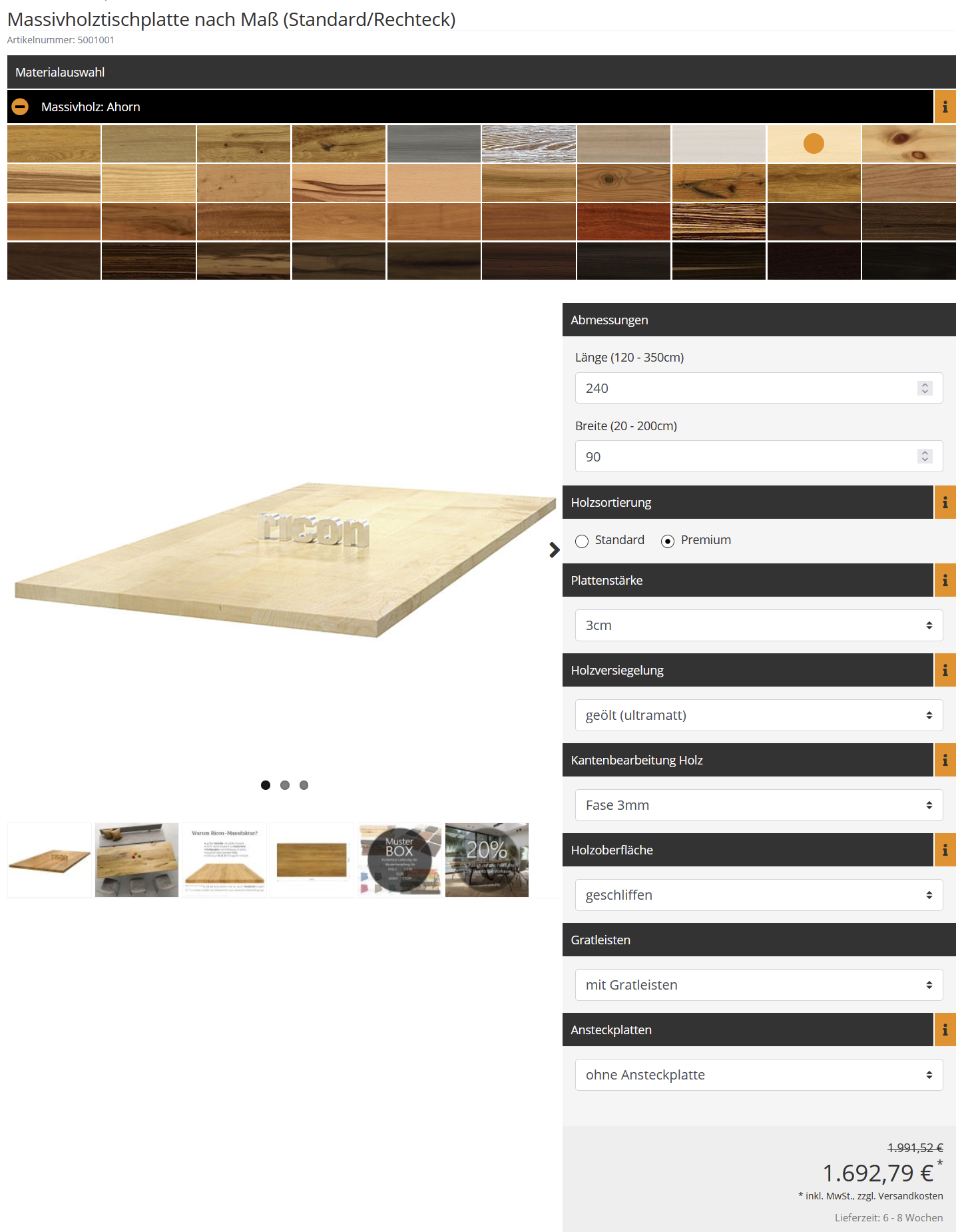 Memory Profile währen mir wichtig und die Maße der Tischplatte sollten in jedem Fall 200cm x 80cm sein.