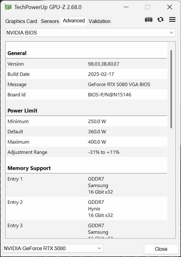 Die Grafikkarte ist auch für 360 Watt ausgelegt und laut CPU-Z lässt sich das Powerlimit noch auf 380 Watt erhöhen.