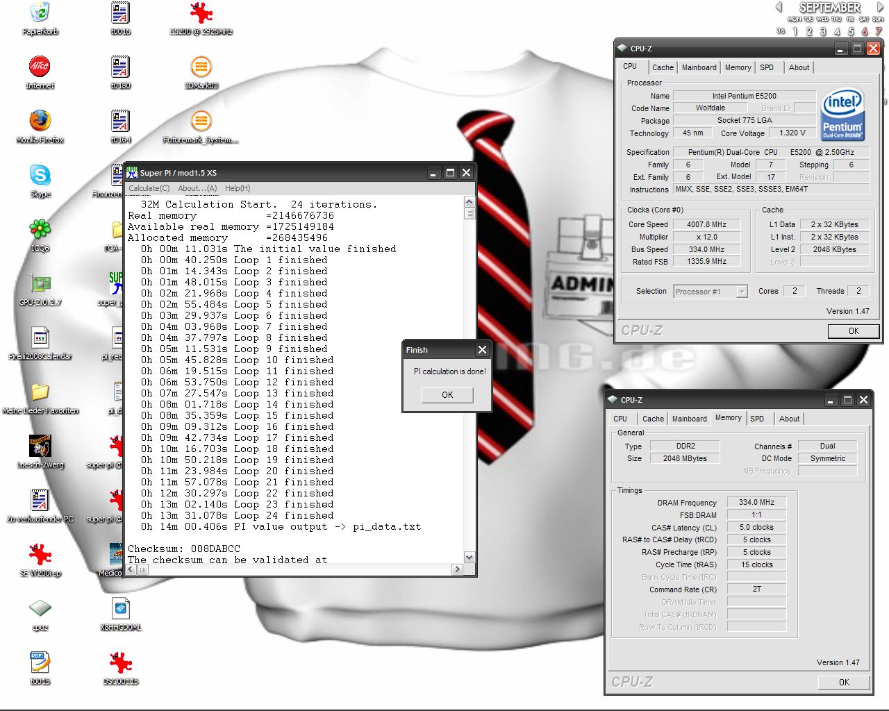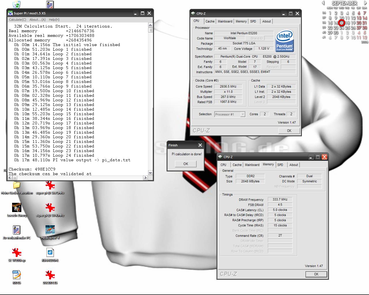 Jetzt kannst du versuchen, sofern du dir nicht sicher bist, dass dein Board problemlos 300-330MHz FSB-Takt mit dieser CPU mitmacht (FSB-Walls), den Multiplikator der CPU sagen wir mal auf 8 zu senken (dadurch bleibt die CPU bei diesem Versuch mehr als im grünen Bereich). Jetzt ziehst du den FSB langsam, so in 20MHz-Schritten, bis auf 330MHz hoch (Weiterhin auf den Speichertakt achten, der sollte sich dabei immer innerhalb der Specs bewegen!), und testest jeden Schritt mit Prime (1h Blend, würde ich sagen reicht, fürs Erste). Wenn dein Board diese Prozedur klaglos überstanden hat, dann kannst du sicher sein, dass Board und Speiche als Fehlerquelle nicht in Frage kommen und zum nächsten Schritt übergehen.