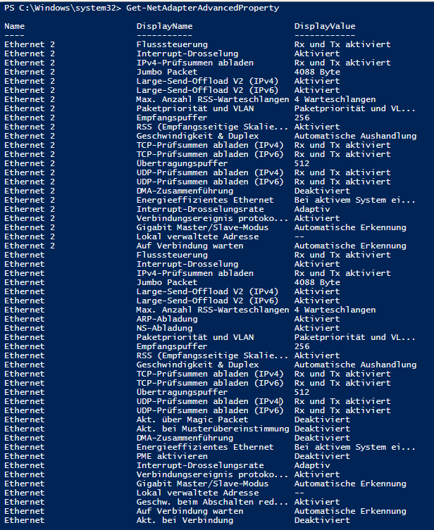 - RSS ist bei allen NICs aktiv und von Windows nutzbar, auf allen PCs geprüft mit den PowerShell Cmdlets: