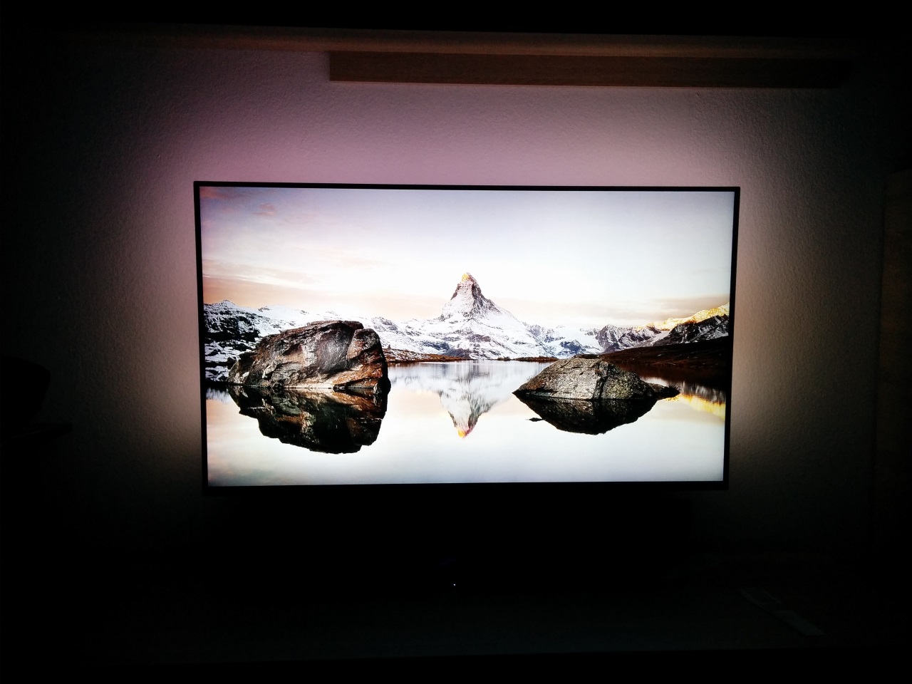 Ich kann halt kein 3 seitiges nutzen, weil oberhalb des TV´s eine Dachschräge habe. Da würde sich das Licht ungleichmäßig ausbreiten. (siehe Anhang) Ich habe Ambi auf Standard / Helligkeit 10. Und nur minimale Hintergrundbeleuchtung (nicht die im Tv ). Ansonsten würde sich Ambilight auch nicht wirklich lohnen.