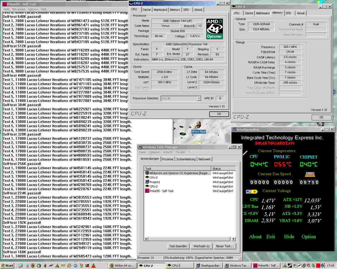 CPU (Opteron 150) läuft im Moment bei 2800 MHz @ 1,39V