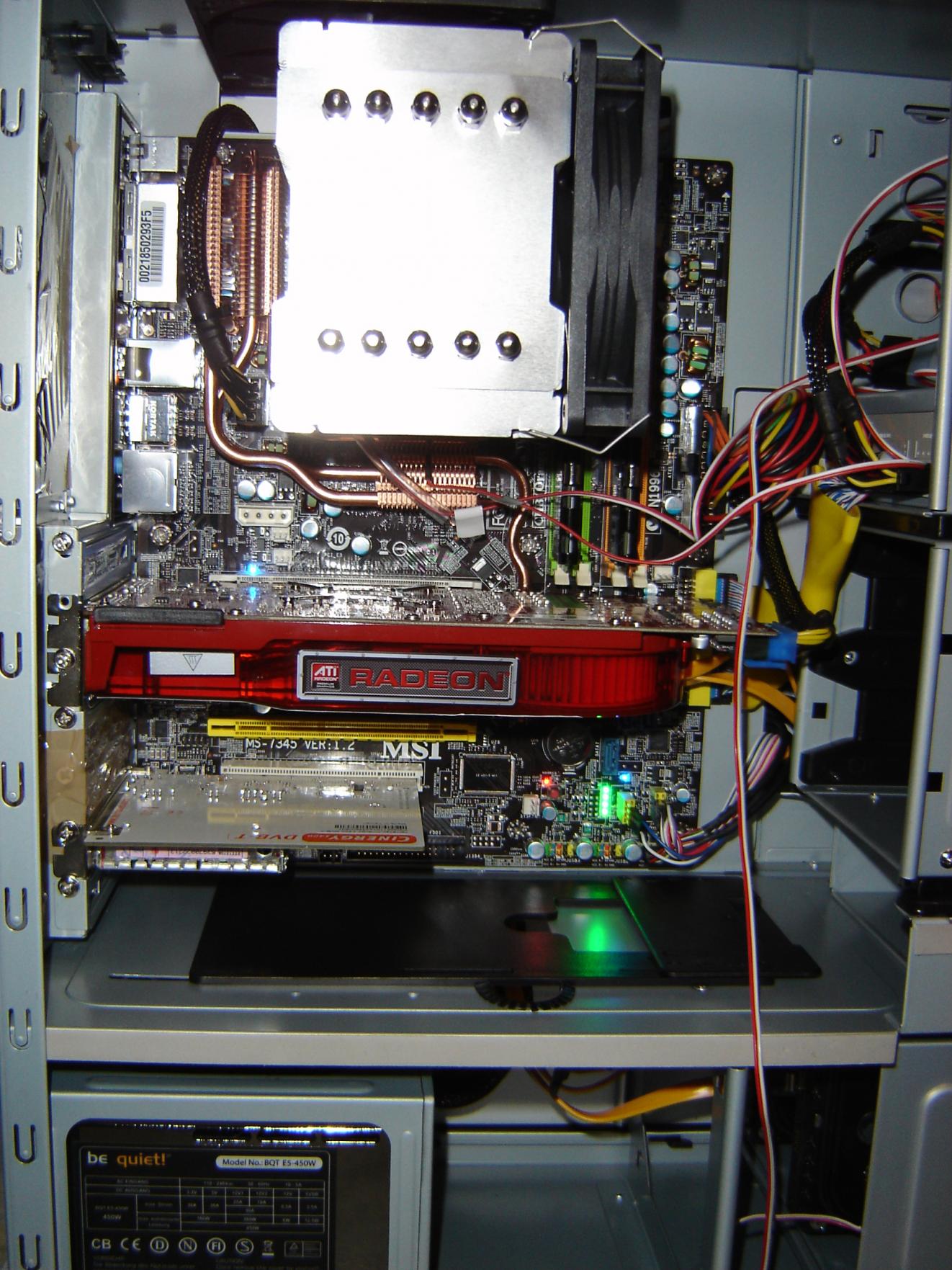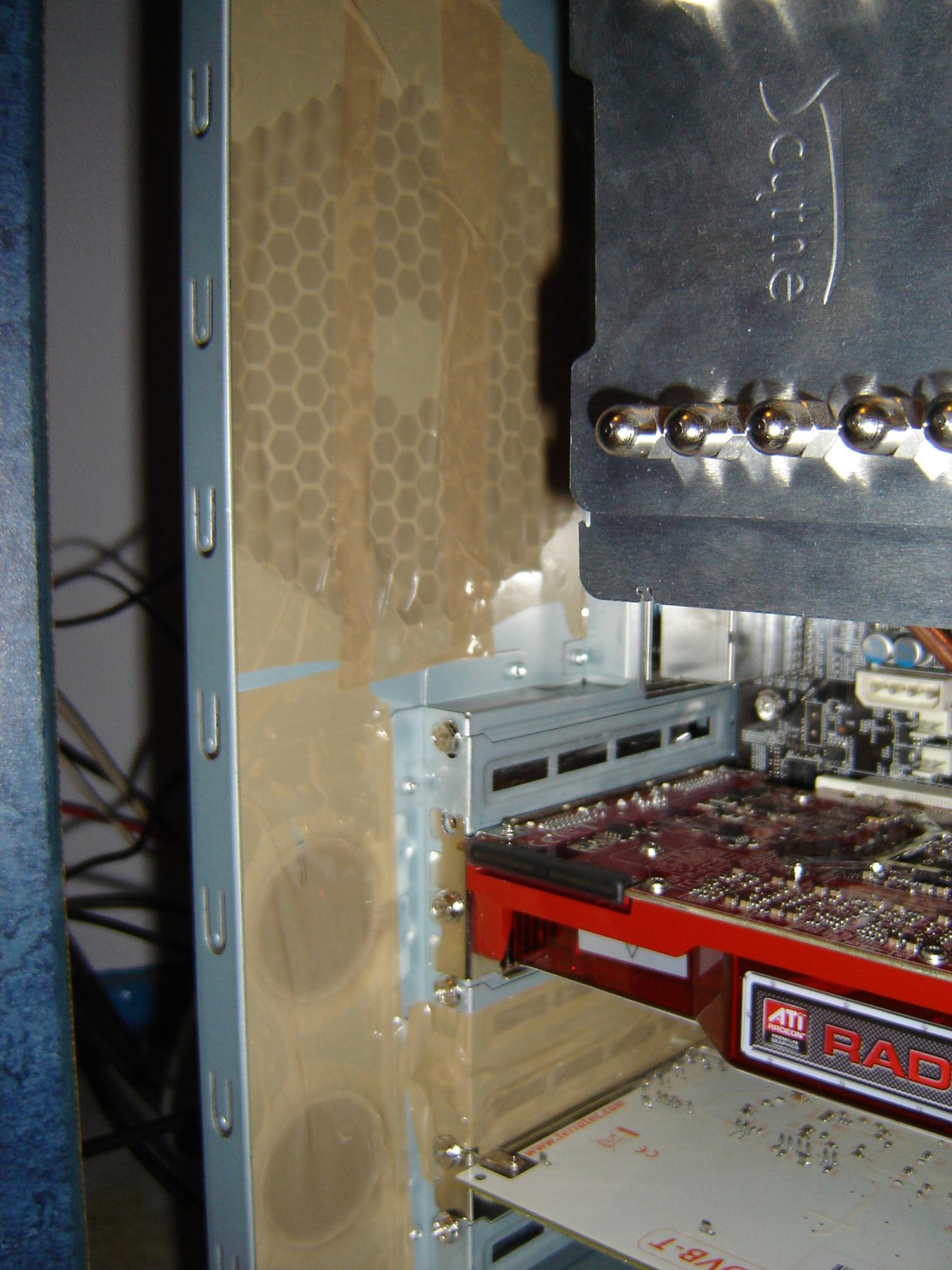 Sehr schönes Case. Edel von außen und innen. Hinten hab ich es komplett zugeklebt. Ums NT herum aber noch nicht. Alle Kabel anständig zu verlegen hat mich recht viel Zeit gekostet - die war es aber wert. Durchweg 2-3 Grad weniger bei allen Messungen jetzt. Gut gedämmt ist es auch. Die beiden Platten hatte ich zuerst oben horizontal eingebaut. Dann passte aber die Radeon 4870 nicht mehr rein. Also die Platte nach unten vertikal. Wenn die Lager hops gehen sollten habe ich ja insgesamt 5 Jahre Garantie auf die Raptors - also nicht ganz so wild