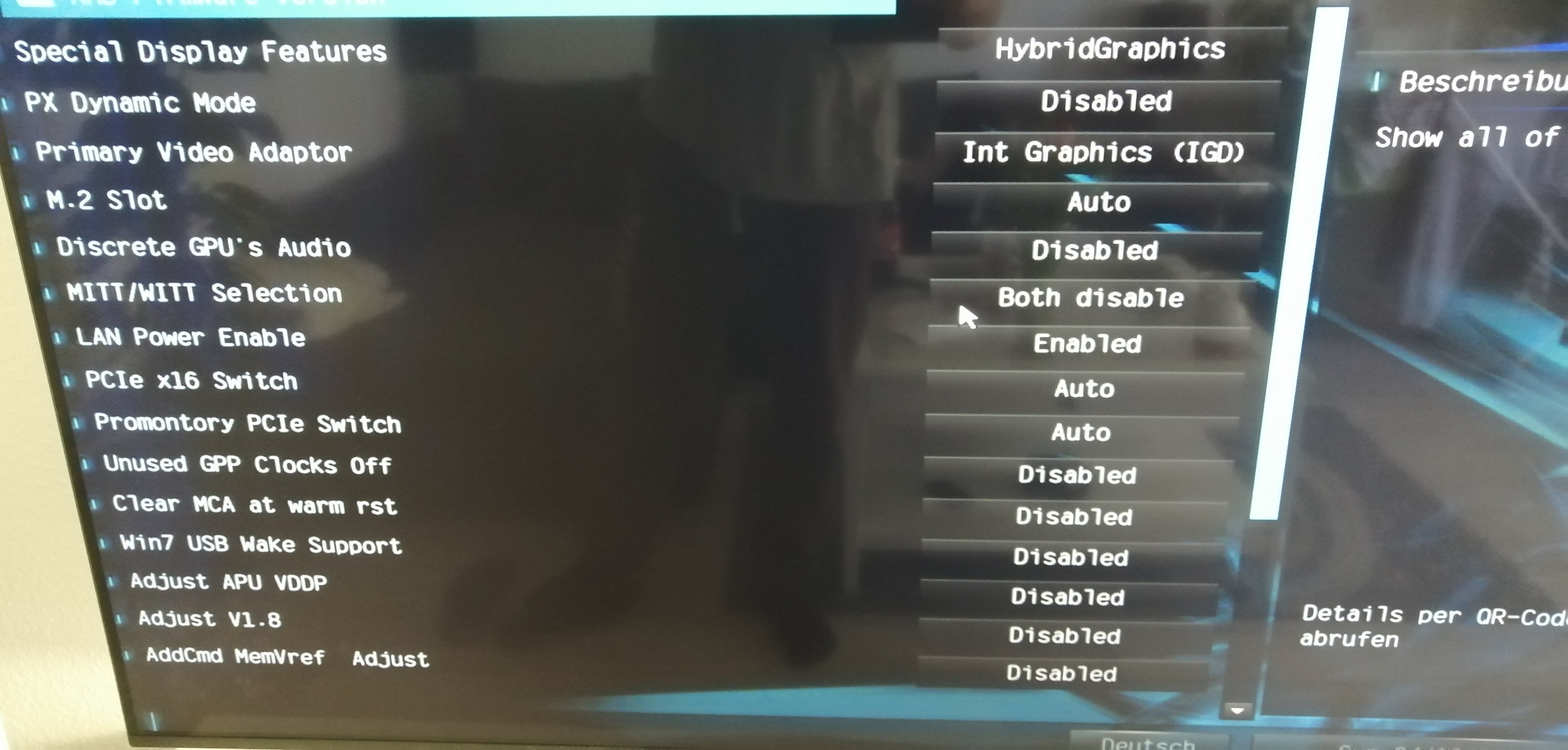 @Lichtstark Beitrag erklärt), was ein enormer Leistungssprung zur HD7850 ist und das HDMi Kabel an der GPU entfällt. Die FPS haben sich, je nach Spiel, teilweise mehr als verdoppelt. Die Einstellungen im BIOS hab ich abfotografiert für euch, falls Bedarf besteht. Alles ist in meinem TV Board verbaut. Die GPU ist etwas stramm, da muss ich wohl die Füße vom ADT Adapter noch tauschen oder kürzen. NT befindet sich im verschlossenen Fach. Soll ja nicht sichtbar sein. Werde jetzt noch probieren ob die R9 380 am unteren M2 Slot läuft, was die HD7850 nicht tat (eventuell bezieht sich darauf die Info das nur GPU's ab 2015 unterstützt werden (und Sound über HDMi)). Die zwei drei Zentimeter mehr Kabel hätte ich schon gerne.