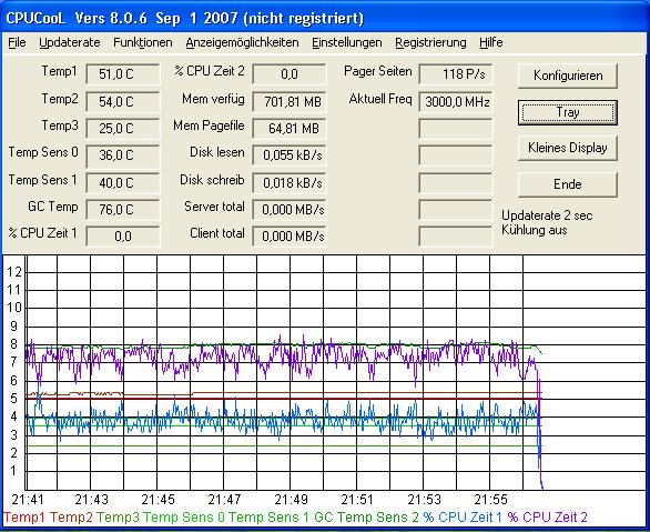 Macht bar sind ganze 3GHz mit dem standart Kühler, der aber extrem Heiss ist dann, der Ram läuft gut bei 333mhz !