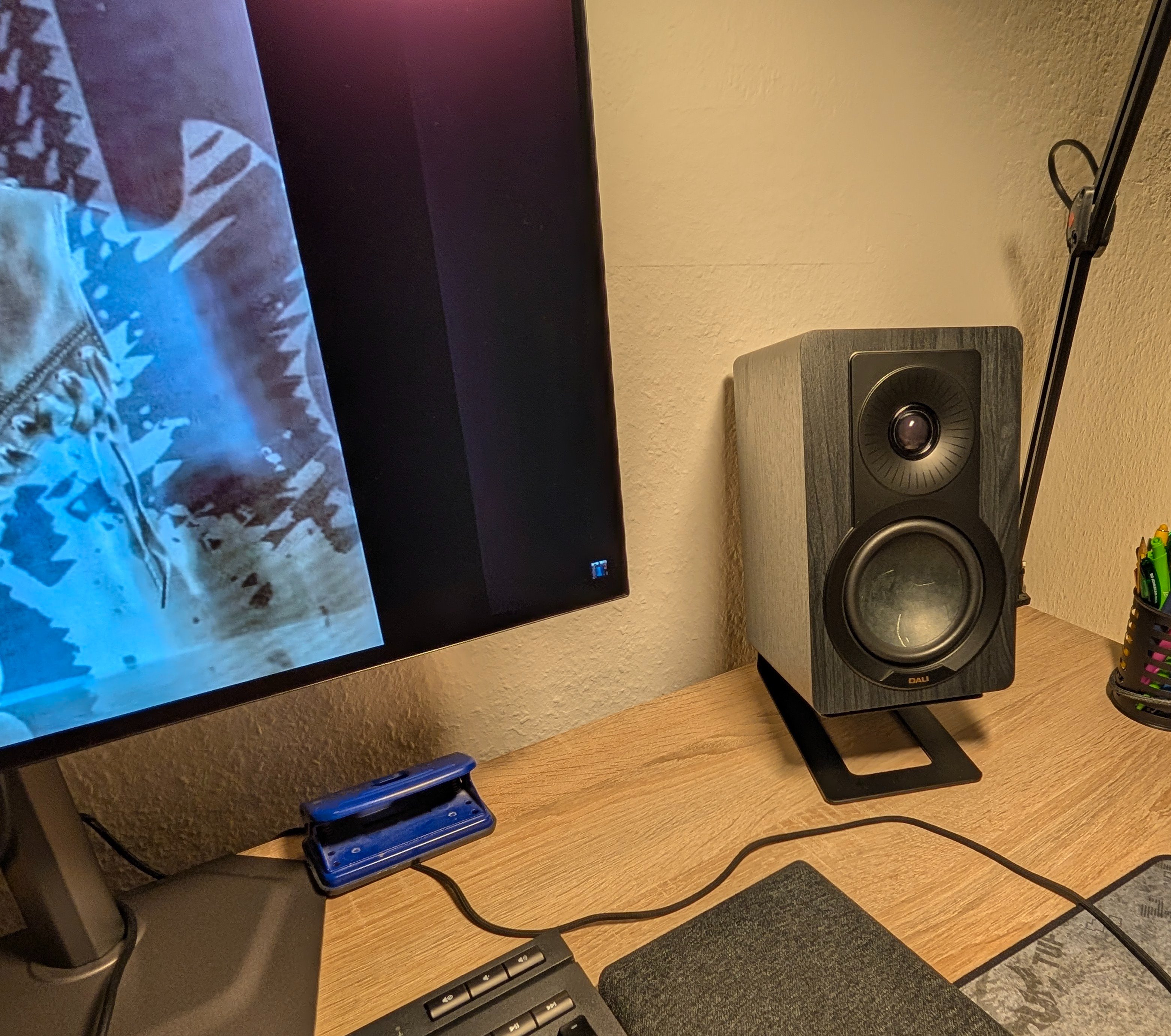 - Dali Opticon 1 MK2 (Passivlautsprecher) = Zu scharf im Hochton, nicht konzipiert für den Schreibtischbetrieb (mMn. nicht zu empfehlen)