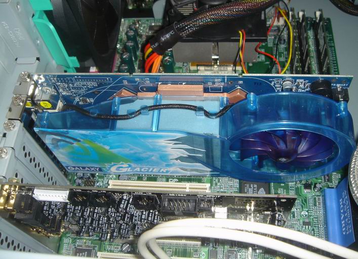 In meinem Midi Tower (Chenbro Gaming Bomb) findet das schöne Stück sofort genügend Platz,nur noch schnell die Slotblende für den Luftauslass am benachbarten PCI Port eingeschraubt und den 12 V Stecker gepluggt.. et Voila, der Rechner startet sofort ohne jeglichen Anstand.