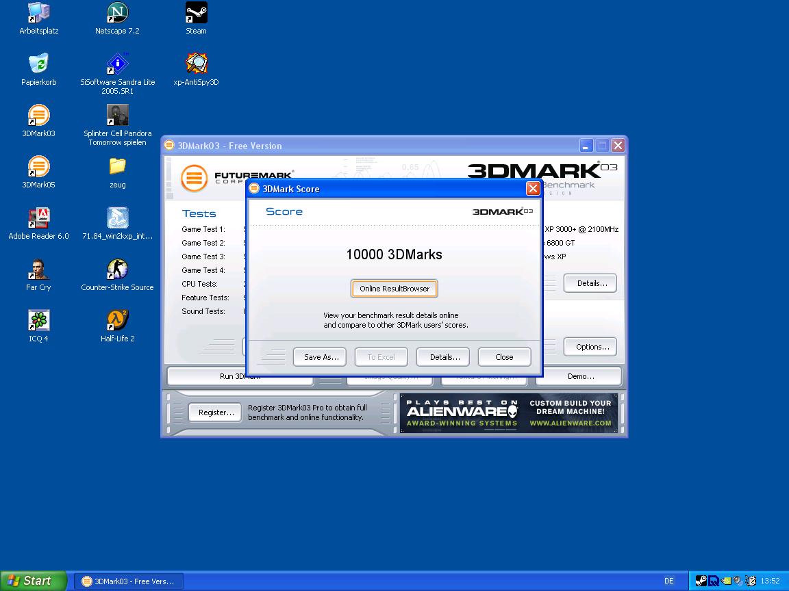 Im 3d mark 03 mache ich auf den punkt genau 10000(
