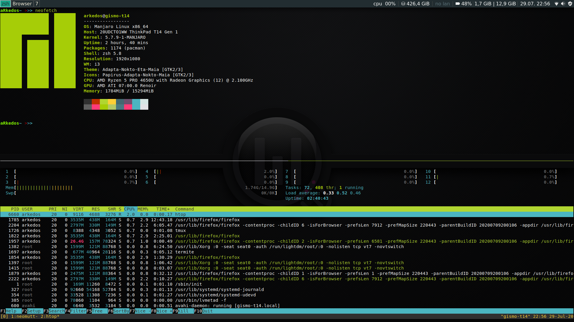 Ich habe mit mittlerweile ein brandneues Thinkpad T14 mit einer AMD Renoír CPU zugelegt und betreibe dies mit Manjaro Linux und wollte hier mal meine Eindrücke schildern, wie gut das Gerät mit meinem bevorzugten Betriebssystem harmoniert.