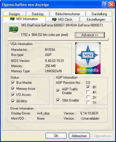 Also, ich kauf mir ja eine MSI NX6800 Ultra bzw. ich hab sie schon bestellt! Ich will die MSI eigentlich nur wegen dem DOT haben bzw. mit der höchsten Stufe von DOT ist glaub ich ein Takt von 460/1260 Mhz möglich! Ich bin von einigen Leuten verunsichert worden, die geklagt haben, dass es Stabilitätsprobleme mit der Karte gibt! Ich hab jedenfalls auch gehört, dass die MSI Karte nicht besonders hoch gehn soll! Wie auch immer, ich hab dann bei MSI in der RMA Abteilung nachgefragt (hab da eigentlich wegen einer Reklamation eines DVD-Laufwerks angerufen) wie das mit der MSI Ultra bzw. mit DOT aussieht! Der Mann am Telefon hat mir versichert, dass wenn ich mit DOT übertakte, die Garantie von Seiten MSI beibehalten wird. Er hat mir sogar gesagt, wenn die eine Stufe von DOT zu Instabilität führen würde, dass ich sie ohne weiteres reklamieren könnte. Sie wird dann von MSI "untersucht", und wenns bei denen auch nicht geht mit dem erhöhten Takt per DOT, dann bekomm ich eine neue Karte! Die Garantie entfällt jedoch, wenn ich nicht mit DOT übertakte, sondern mit einem "gewöhnlichen" anderen Programm. Das können sie feststellen! Ausserdem entfällt die Garantie beim Biosflashen! Wie gesagt, er hat mir das versichert! Er hat mir auch noch erklärt, wie das hinhaut mit DOT, sodass es bei diesen hohen Taktraten keine Probleme gibt, und noch den Unterschied zwischen DOT und anderen Übertaktungsprogrammchen! Weiss das leider nimma genau, aber wenn ihrs wissen wollt, dann ruft einfach an bei MSI! Jedenfalls steht fest, dass du Übertakten kannst, ohne die Garantie zu verlieren!