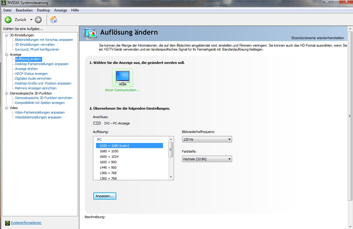 Hier steht aber auch das es 3D Vision unterstützt, aber warum stellt es sich dann nicht ein?