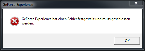 Dann hab ich noch ein anderes Problem. Seit gestern funktioniert der GeForce Experience bei mir nicht. Bekomme jedesmal eine Fehlermeldung. Deinstallation und Neuinstallation haben nichts gebracht. Ich galube das Problem ist erst aufgetaucht als ich den neuesten Treiber (347.52) installiert habe.