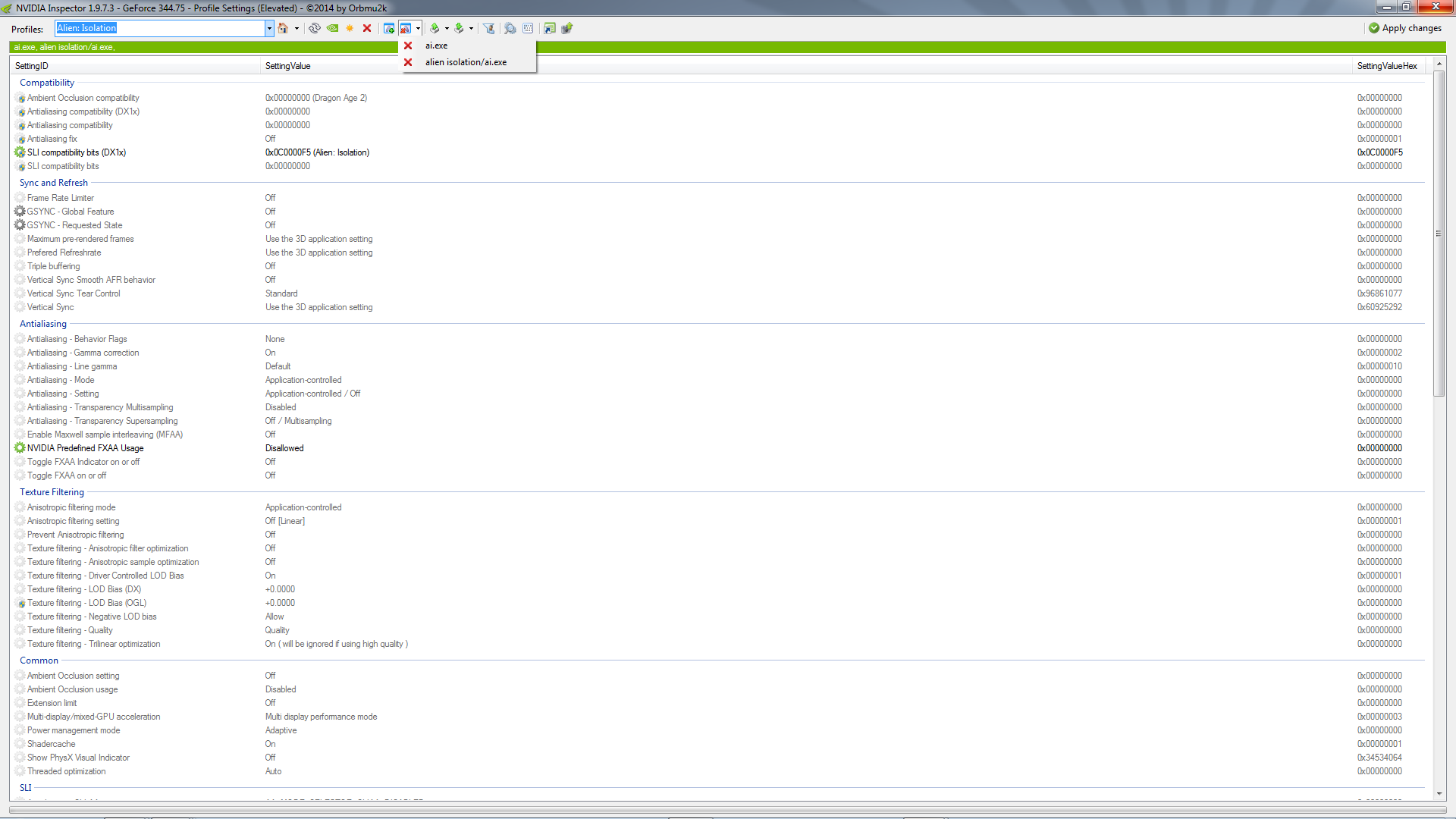Entweder du nutzt DSR oder SuperSampling. Jedenfalls nicht AA/AF. Und ja - Jedes Profil lässt sich auf Standardwerte zurücksetzen. Weiters: Nach jeder Treiberinstallation gehen Änderungen an Profilen verloren. Du musst sogar ein Backup dieser Änderungen machen, willst du sie danach weiter verwenden. Also ja du schadest weder dem Spiel noch der GPU noch sonst wem mit Änderungen im nv inspector und entsprechend meiner Erklärung ist klar, dass es nicht dauerhaft ist/sein muss.