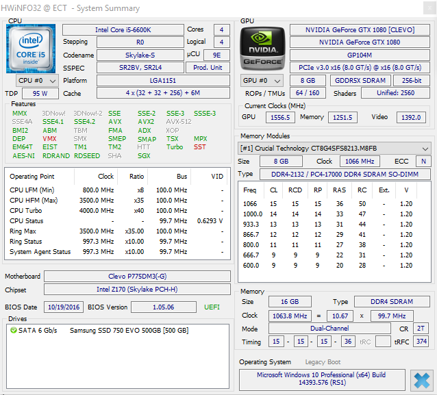 GeForce GTX™ 1080 8GB GDDR5 @ 1836 MHz bei 0,85V + 475MHz VRAM-Takt, Windows 10 LTSB
