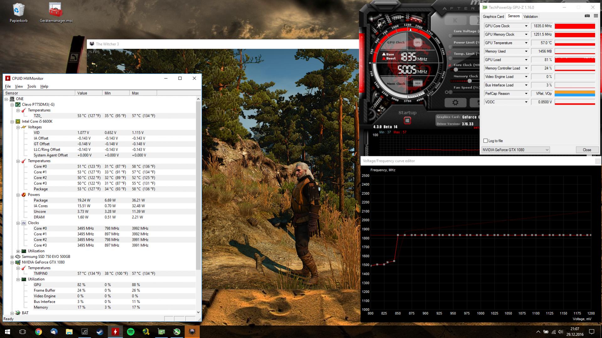 Nach kurzer Zeit fiel mir auf, dass sich bei Witcher 3 auf FHD oder 4k-Ultrasettings nach einer Spielzeit von etwa 30 Minuten ein Temperaturbild von etwa 88°C - 94°C einpendelte.