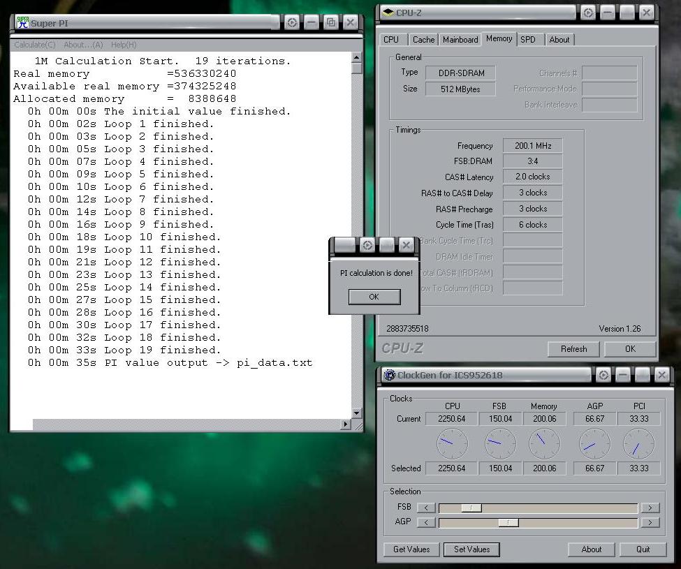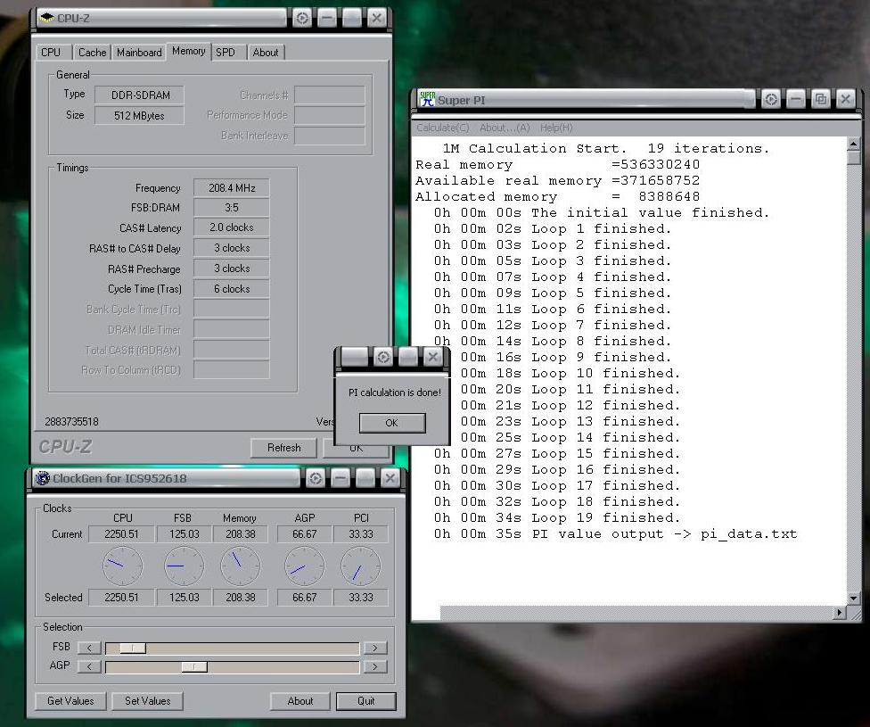 (*hust* 37 Sekunden*hust* ,wegen dem 1:1 Ramteiler ,möchte gern 5:3 einstlelen -> 260Mhz wenn ich den Booster hab oder ich mache den Voltmod (sonst bringt das Ganze nichts), die cpu behalte ich aber die ist der Hammer, wenn mal später dual channel Boards draussen sind draufpacken