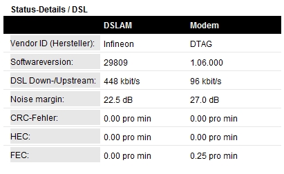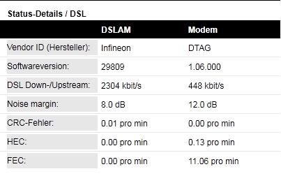 Bei mir ist die Leitung laut Telekom-Mitarbeiter ca. 5,3km lang. Die Größe des Kabels ist dabei 0,4cm² (iwie was mit 0,4 kann das sein???). Der Mitarbeiter sagte, dass das das dünnste Kabel ist was für DSL taugt. Weiterhin ist meine Leitung mit 55db auch sehr schwach. Eigentlich wird ja DSL RAM erst ab 50db geschalten und DSL Light ab 55db, aber ich hab einfach Schwein gehabt. So hat es auch der Telekom-Mitarbeiter gesagt der echt viel Ahnung hatte. Als Router nutze ich ein Speedport W504V.