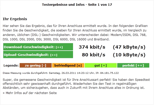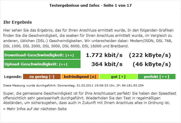 Zum Surfen allgemein lässt sich sagen das sich das auch sehr gebessert hat. Den ARD Livestream kann ich nun locker anschauen, auch in der hohen Auflösung. Auch Youtube schafft das Internet nun ohne buffern (vorher musste ich bei 360 immer etwas buffern, bei 240 nicht). Jetzt kann ich sogar 3 Videos gleichzeitig ohne buffern Laden ^^. Einzig die Videos auf Gamestar.de müssen immernoch buffern.