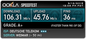 Also nach kleineren Schwierigkeiten mit dem Aufbau, bin ich doch wirklich recht zufrieden. Eine gute Verdopplung der Geschwindigkeit lässt sich sehen. Ob das auch weiterhin alles so reibungslos klappt - insbesondere zu unterschiedlichen Uhrzeiten, muss sich aber erst zeigen.