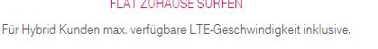 Seit ein paar Wochen gibt es den Magenta Eins Hybrid Vorteil. Damit bekomme ich den maximal verfügbaren LTE-Speed für Hybrid. Das sind bei mir ca. 90 Mbit, nahezu konstant. Mit einer Aussenantenne sind dann evtl. 95-99 Mbit drin.